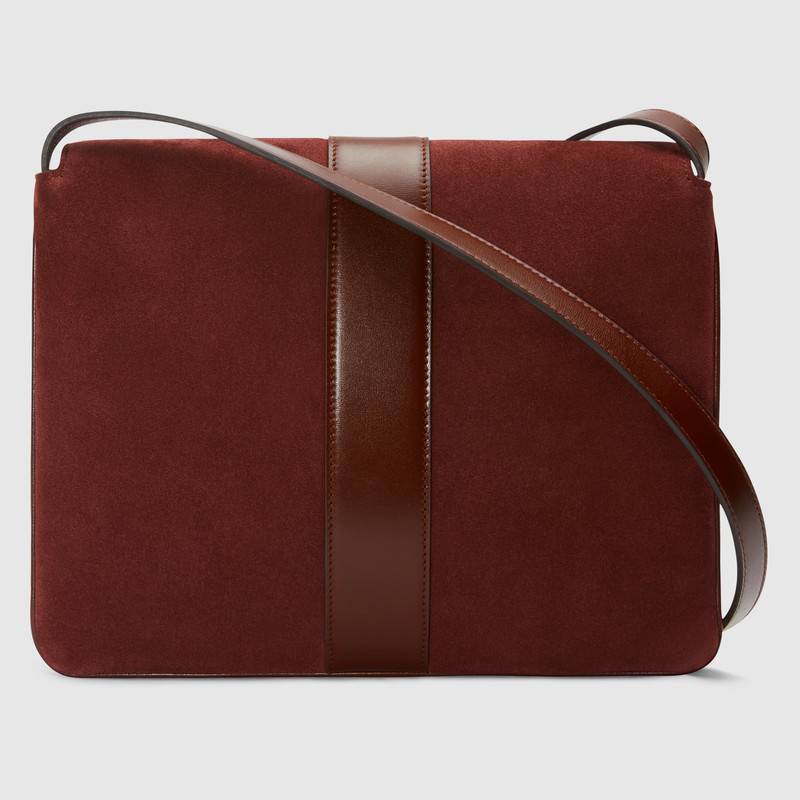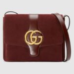 - 550126 Gucci Arli系列 中号 麂皮拼皮 双G翻盖 复古肩背包 酒红色