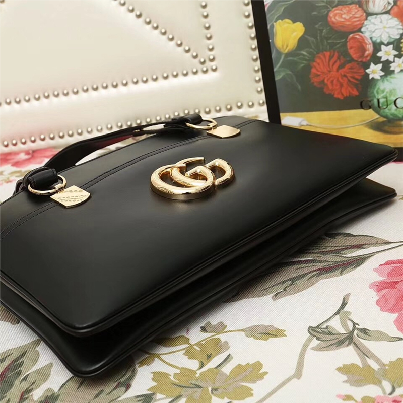 550130 Gucci Arli系列 大号 双G徽标 复古手提包 黑色