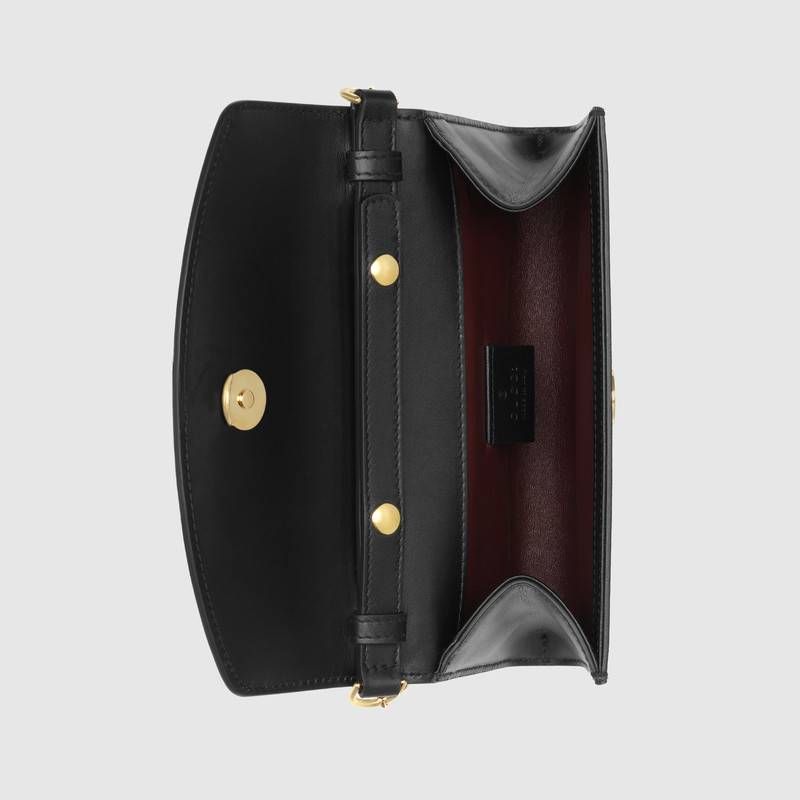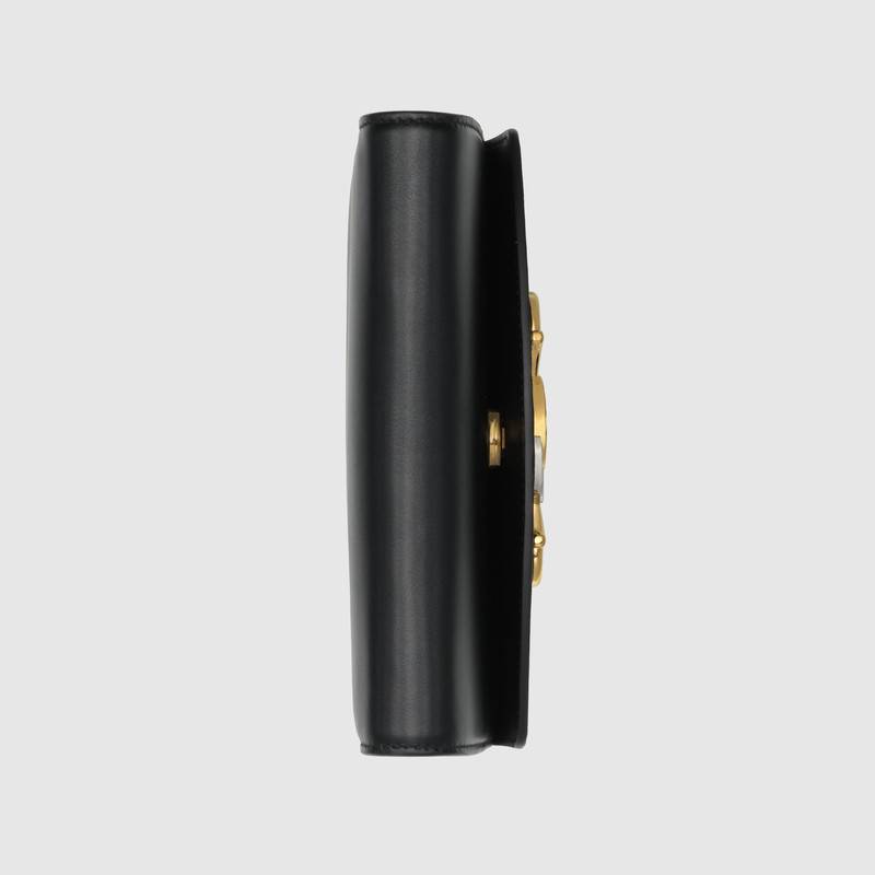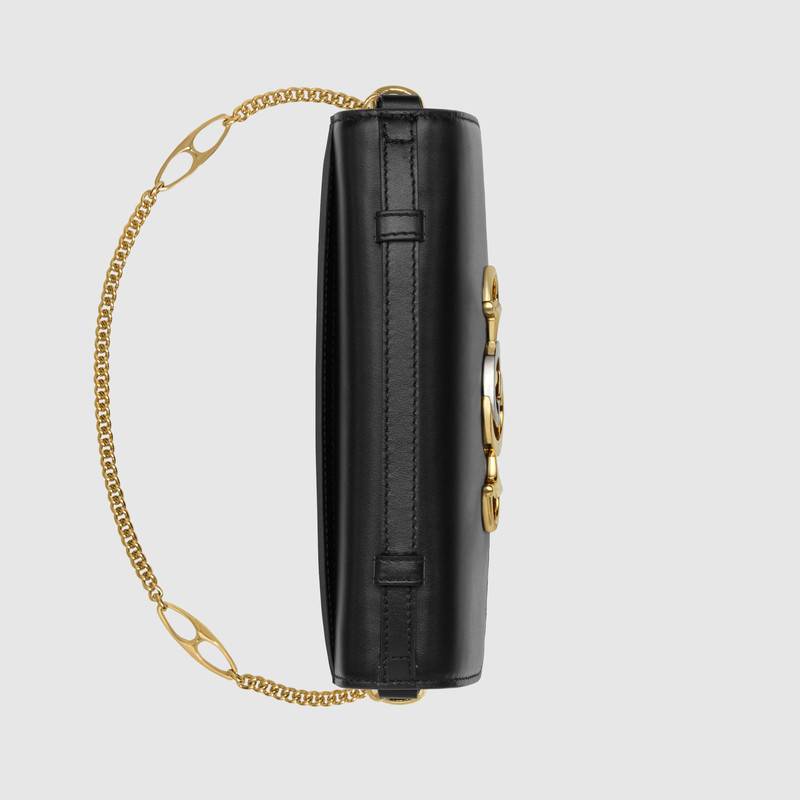 564718 Gucci女袋 Gucci Zumi系列 互扣式G马衔扣 光面皮革 古驰迷你肩背包 黑色