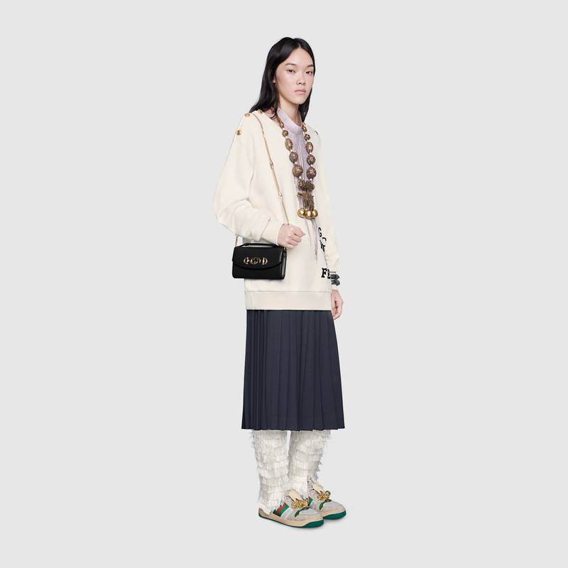 - 564718 Gucci女袋 Gucci Zumi系列 互扣式G马衔扣 光面皮革 古驰迷你肩背包 黑色