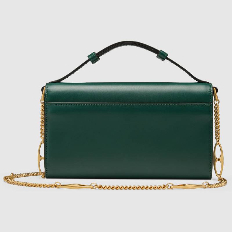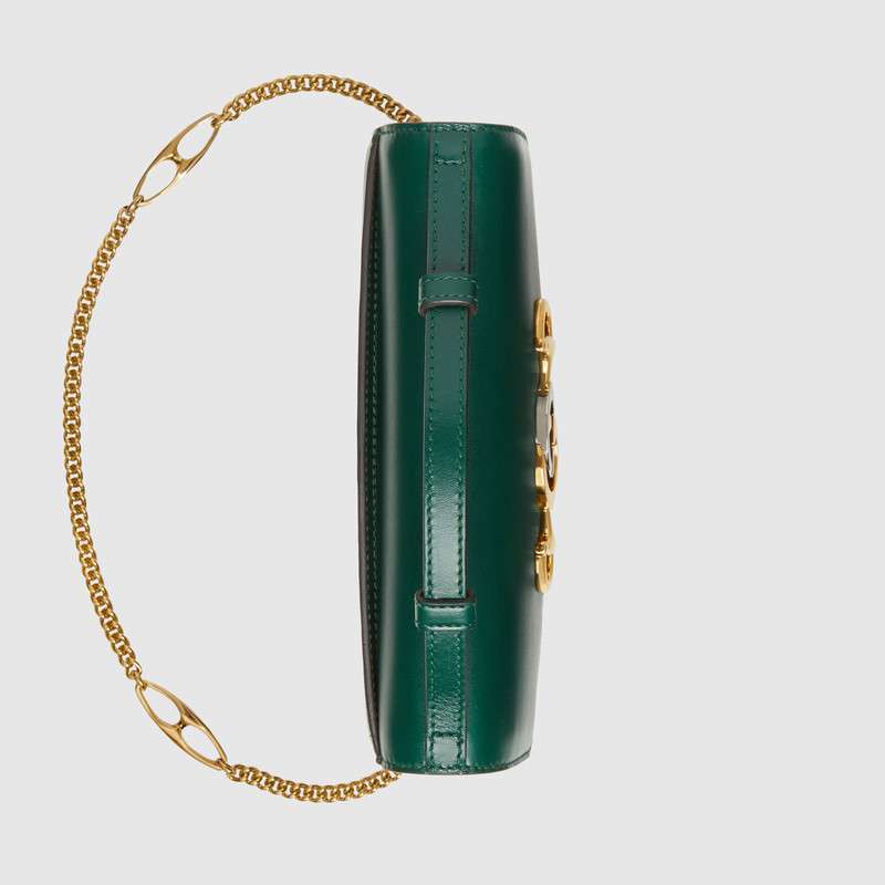 564718 Gucci女袋 Gucci Zumi系列 互扣式G马衔扣 光面皮革 古驰迷你肩背包 深绿色
