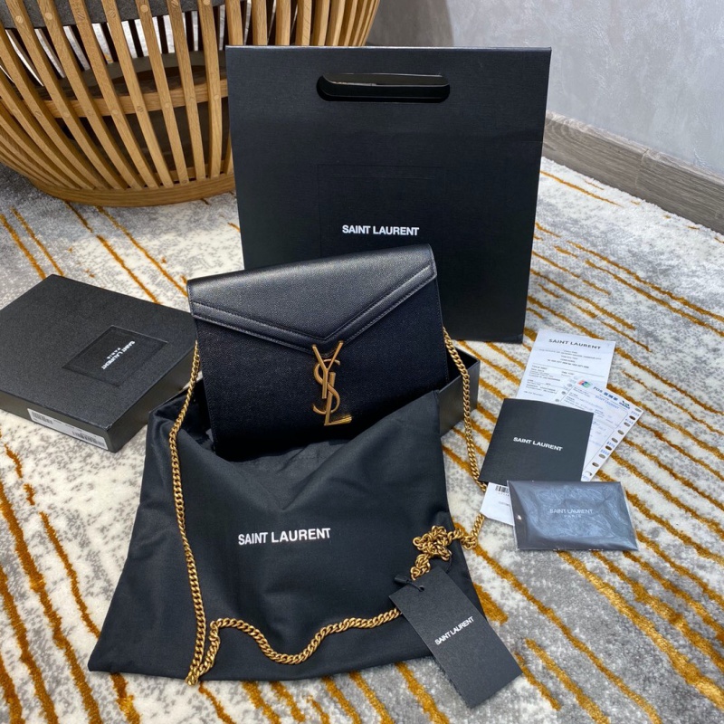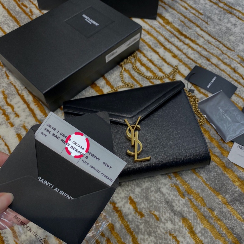 - 582334 YSL圣罗兰 CASSANDRA 粒面压花真皮链条钱包 YSL信封包 黑色
