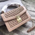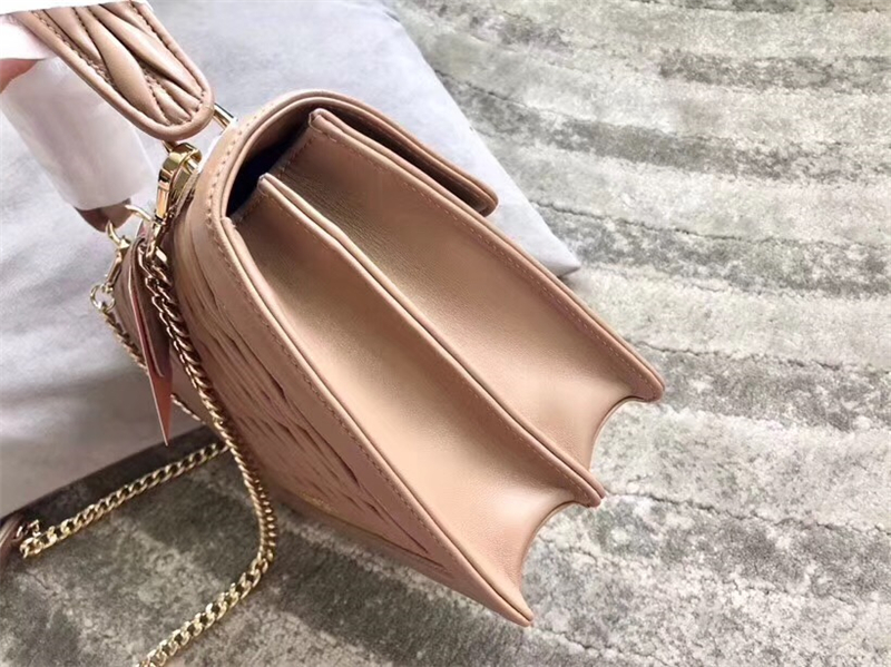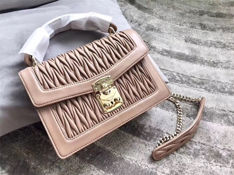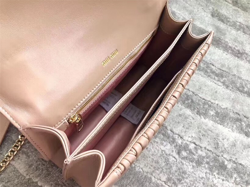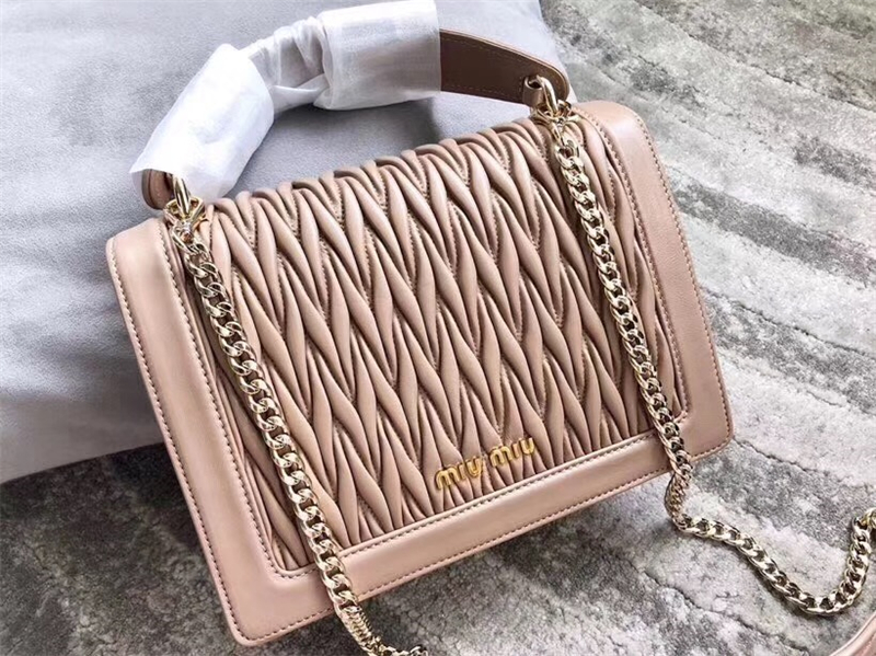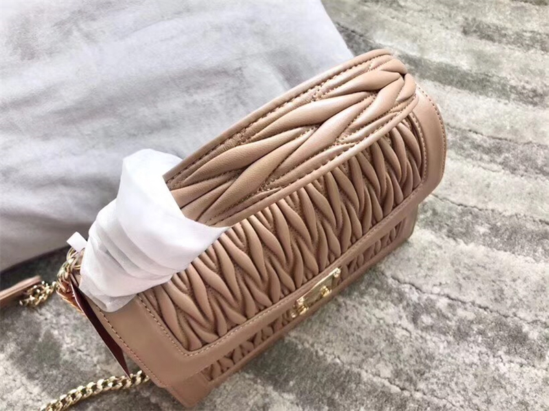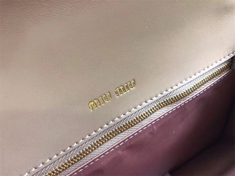 5BA094 MIUMIU缪缪 专柜新款 提花压纹 翻盖羊皮手袋 杏色