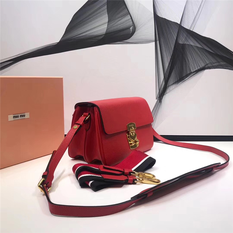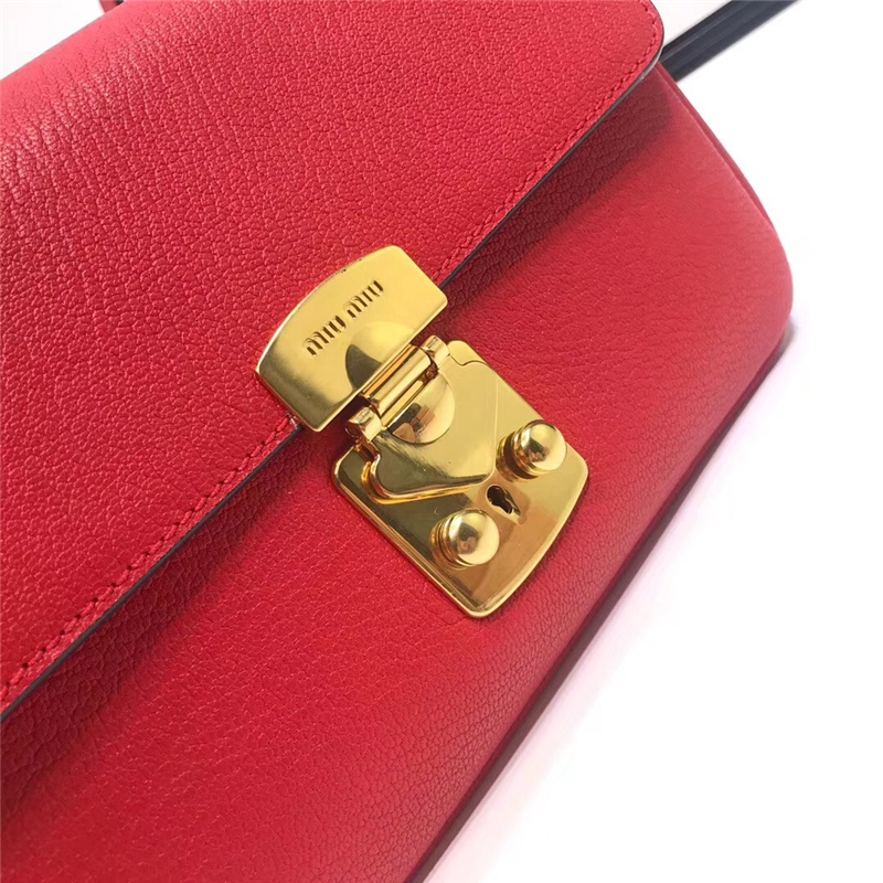 - 5BD113 MiuMiu女包 缪缪手袋 翻盖锁扣 进口山羊皮肩包 红色