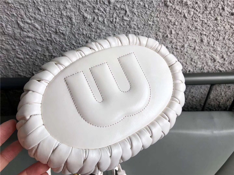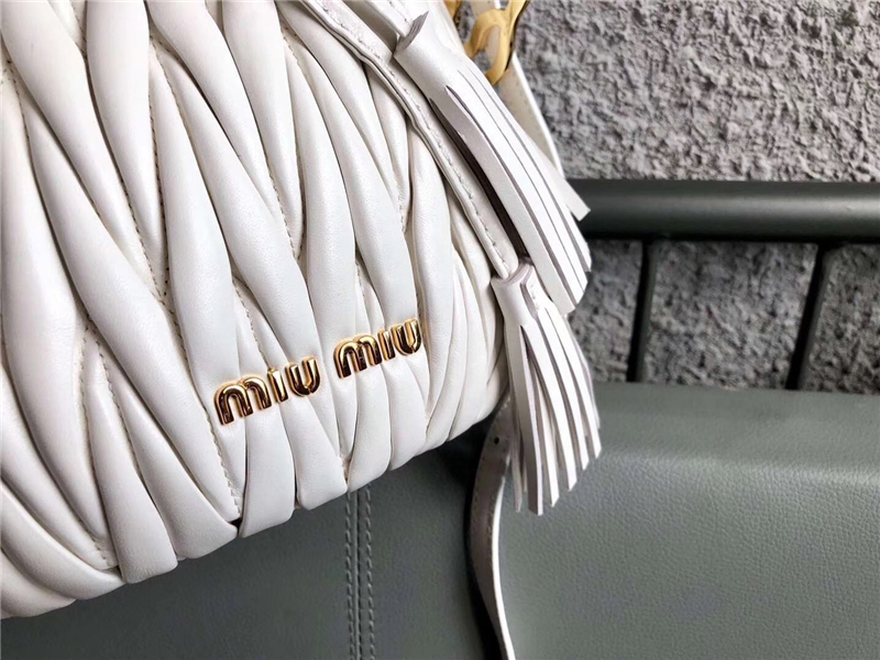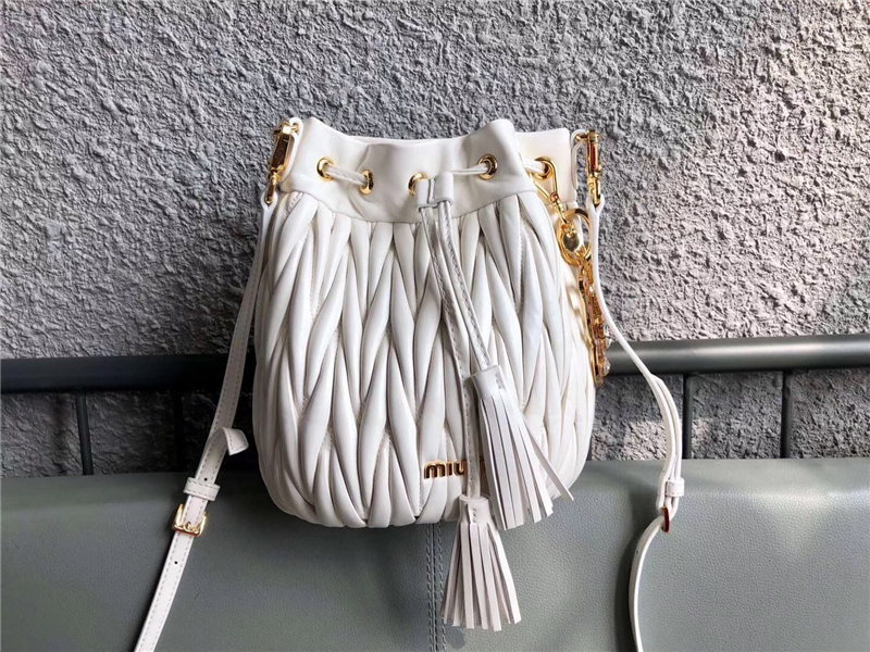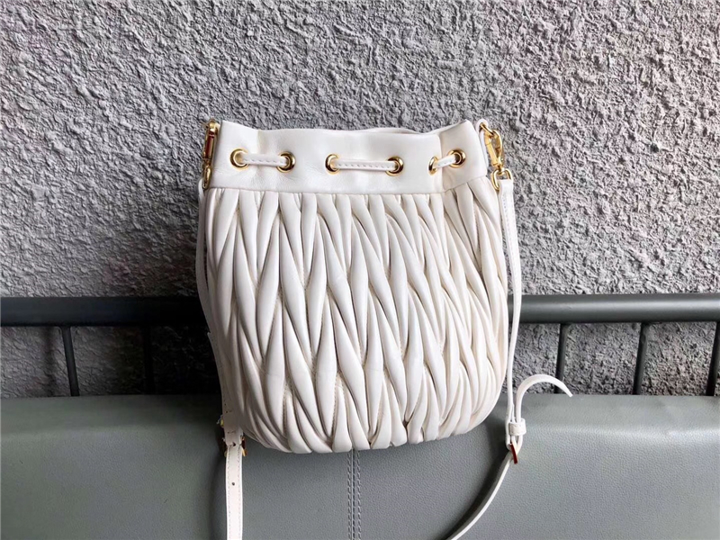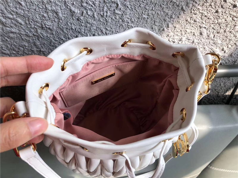 5BE014 MIUMIU缪缪 专柜新款 BUCKET BAG 羊皮褶皱 桶形包 白色