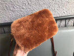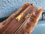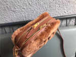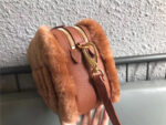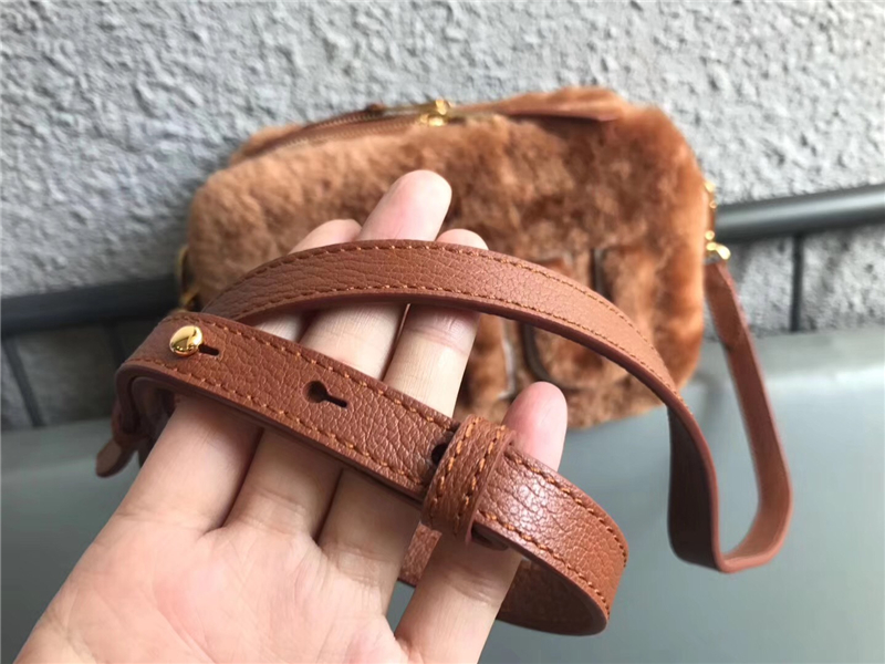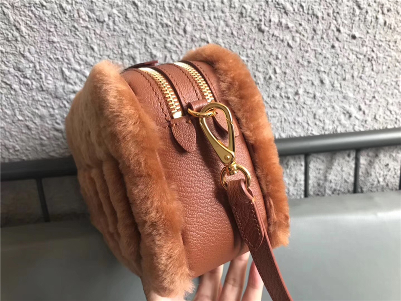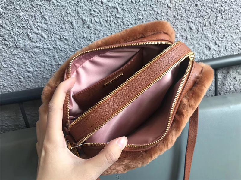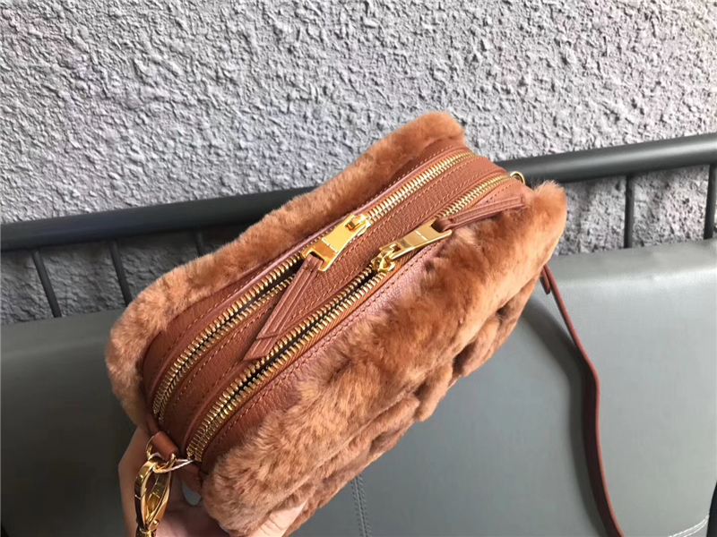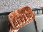 - 5BH084 MIUMIU缪缪 Big logo 羊羔毛 双拉链 手包斜挎包 棕色