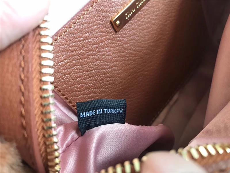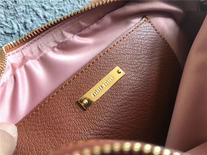 5BH084 MIUMIU缪缪 Big logo 羊羔毛 双拉链 手包斜挎包 棕色