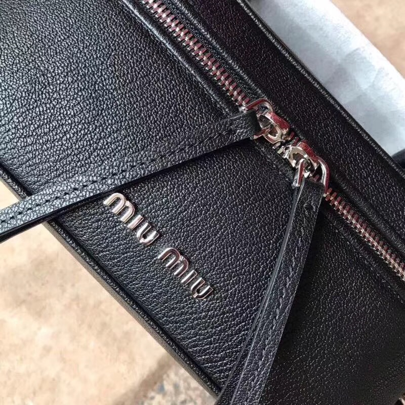 5BH122 MIUMIU缪缪 专柜最新款 大号 山羊皮 手提单肩包 黑色