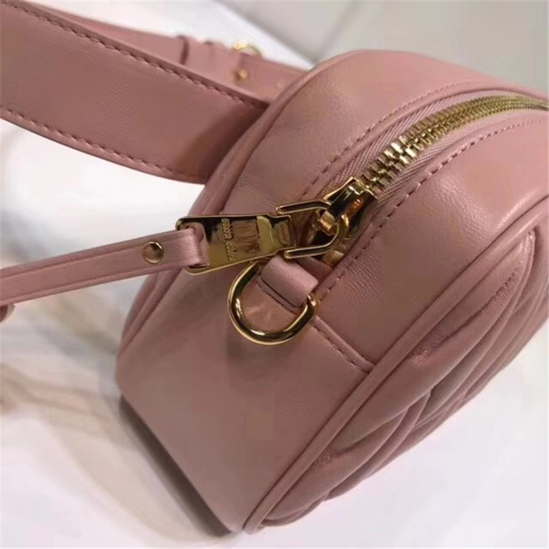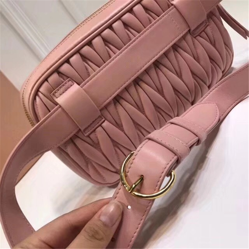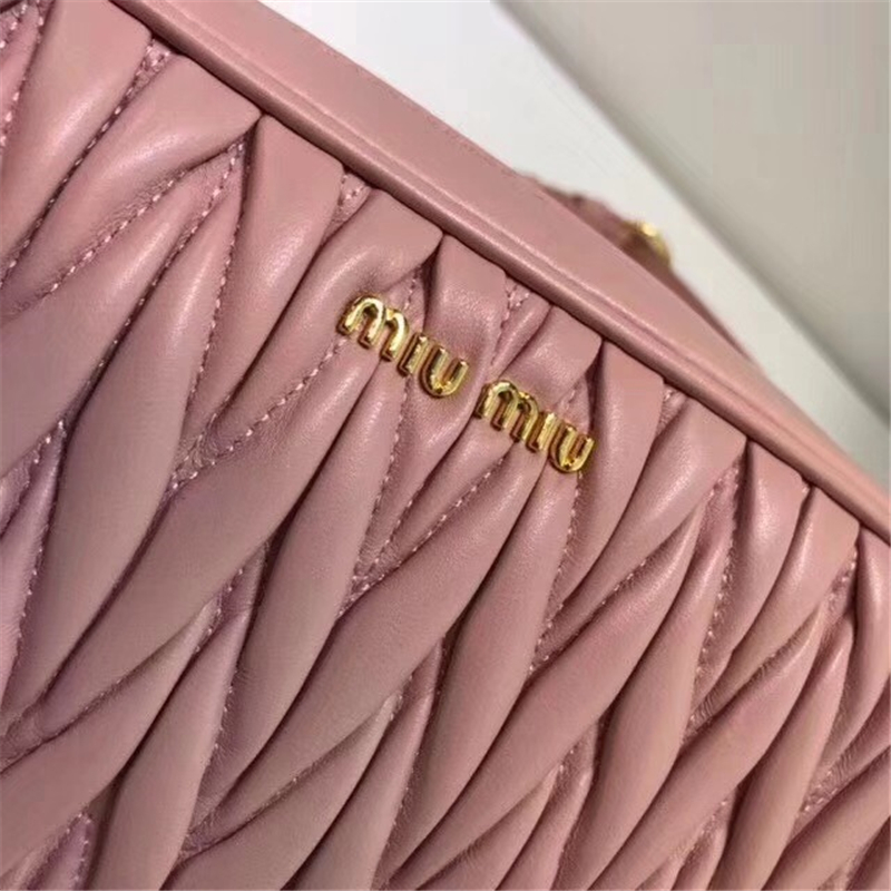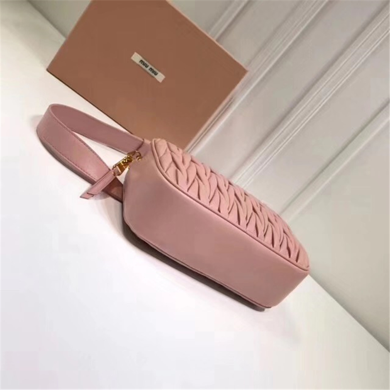 5BL018 MIUMIU缪缪 软羊皮 经典褶皱 拉链 皮腰包 粉色