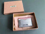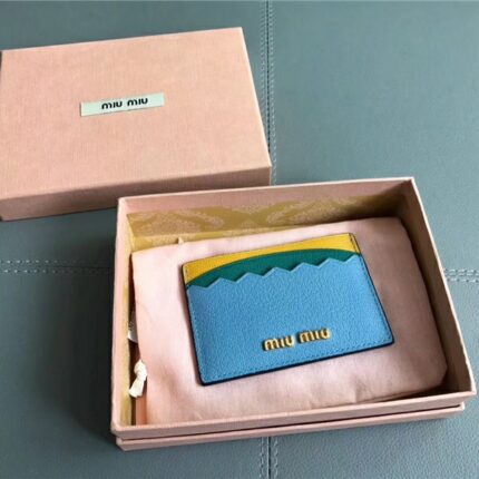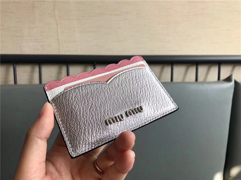 - 5MC208 MiuMiu卡包 波浪拼色系列 进口牛皮山羊纹 缪缪拼色卡包 粉白银