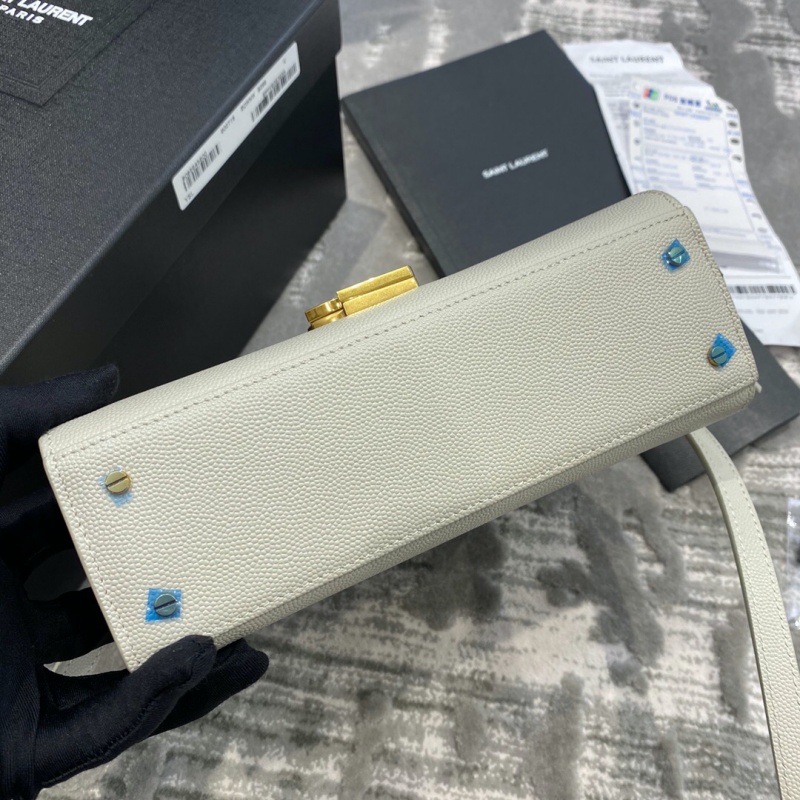 602716 YSL圣罗兰 CASSANDRA迷你粒面压印皮革手提包 白色