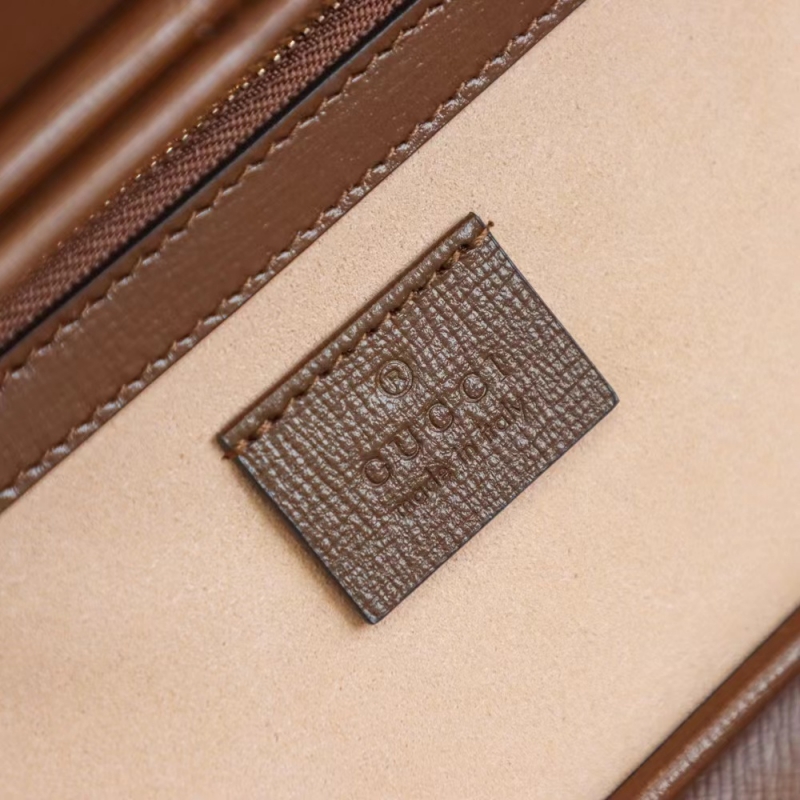 - 结构:米色/乌木色GG Supreme帆布,环保材料,饰棕色皮革滚边 人造丝和超细纤维衬里 内部:2个卡片隔层,1个拉链口袋 可拆卸腕带高11.5厘米;可拆卸可调节肩带高55厘米 Gucci刻花搭扣