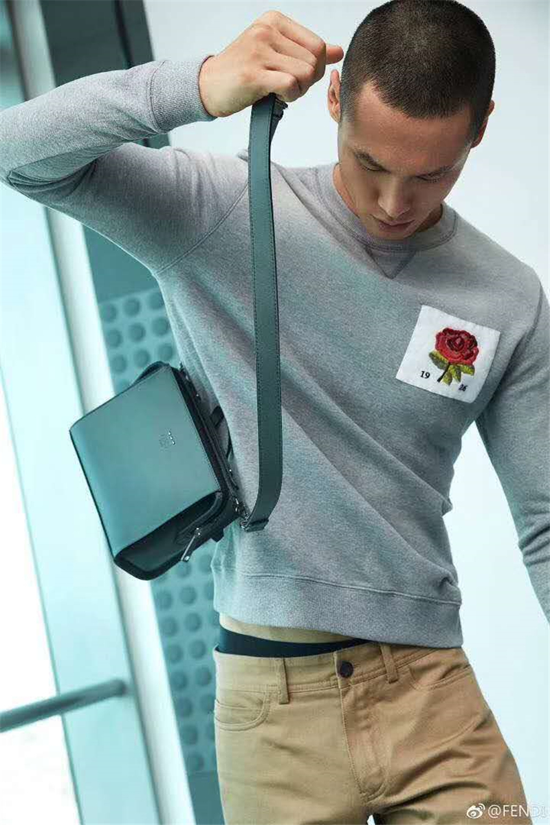- 6238 FENDI 芬迪 长方形 小牛皮 男士 手提斜跨包 蓝灰色