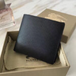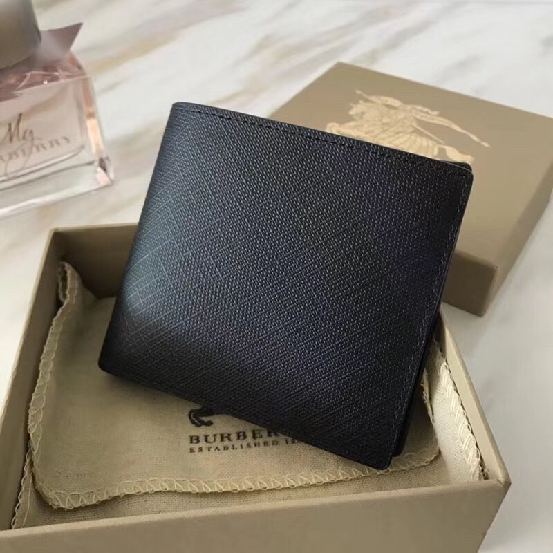 - 80060611 Burberry男款钱夹 London格纹拼皮革 短款 巴宝莉双折西装夹 纯黑色
