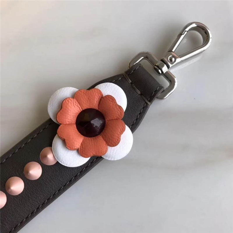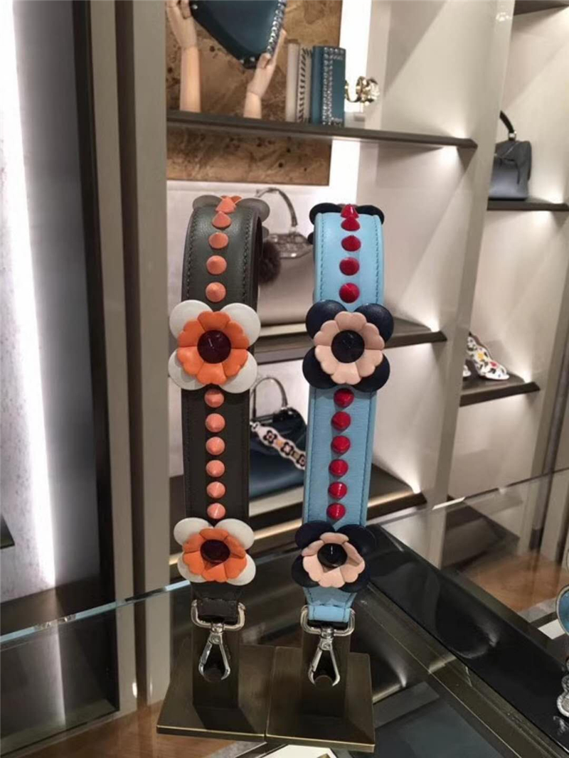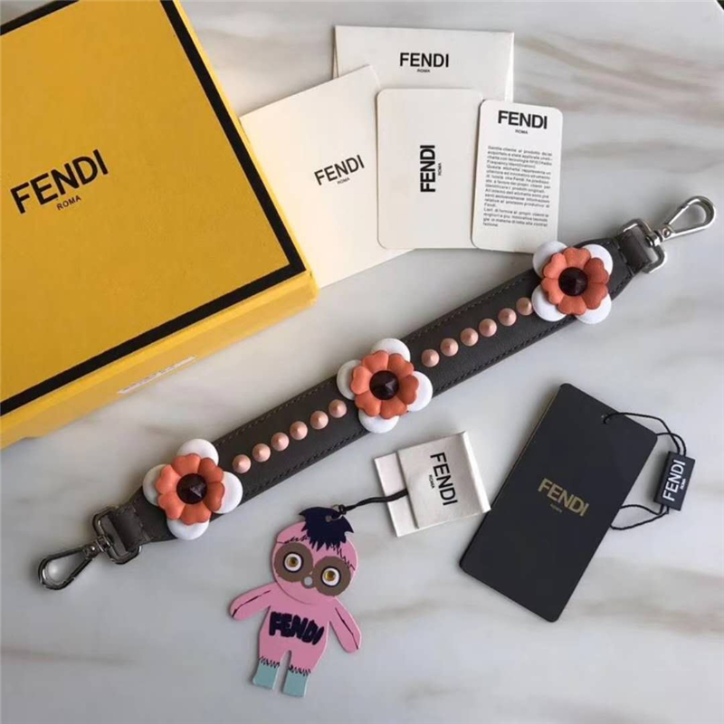 832 Fendi芬迪 超美包带 花朵锥形铆钉 炫彩长肩带 啡色