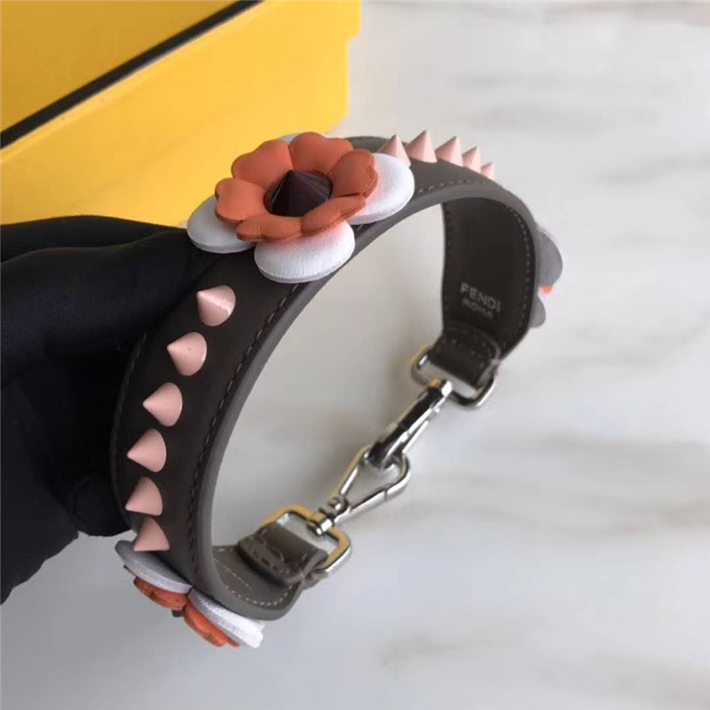 - 832 Fendi芬迪 超美包带 花朵锥形铆钉 炫彩长肩带 啡色