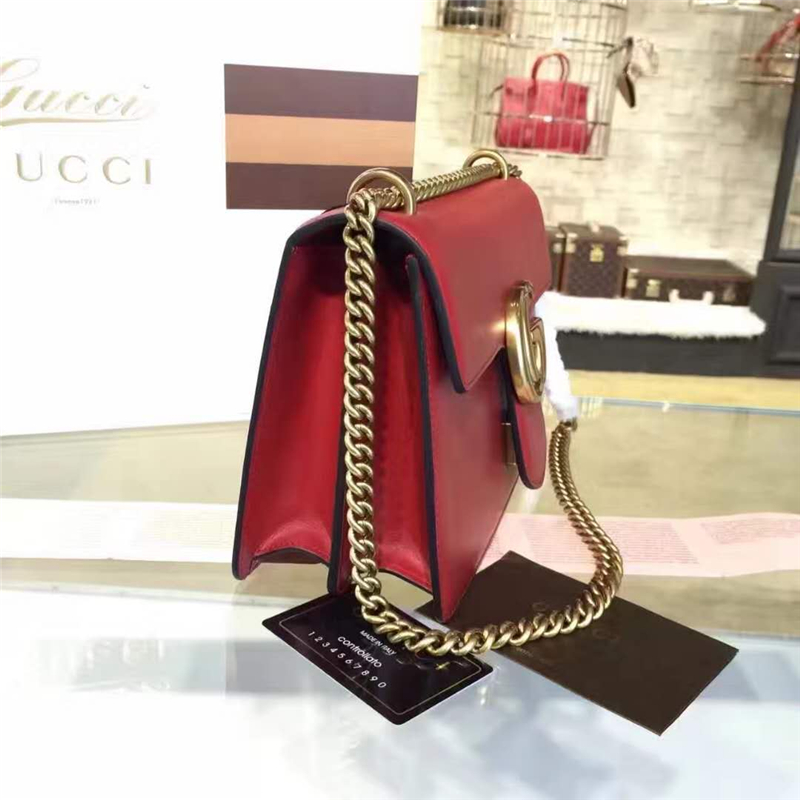 A431777 Gucci 进口头层皮 复古翻盖 链条单肩包 红色