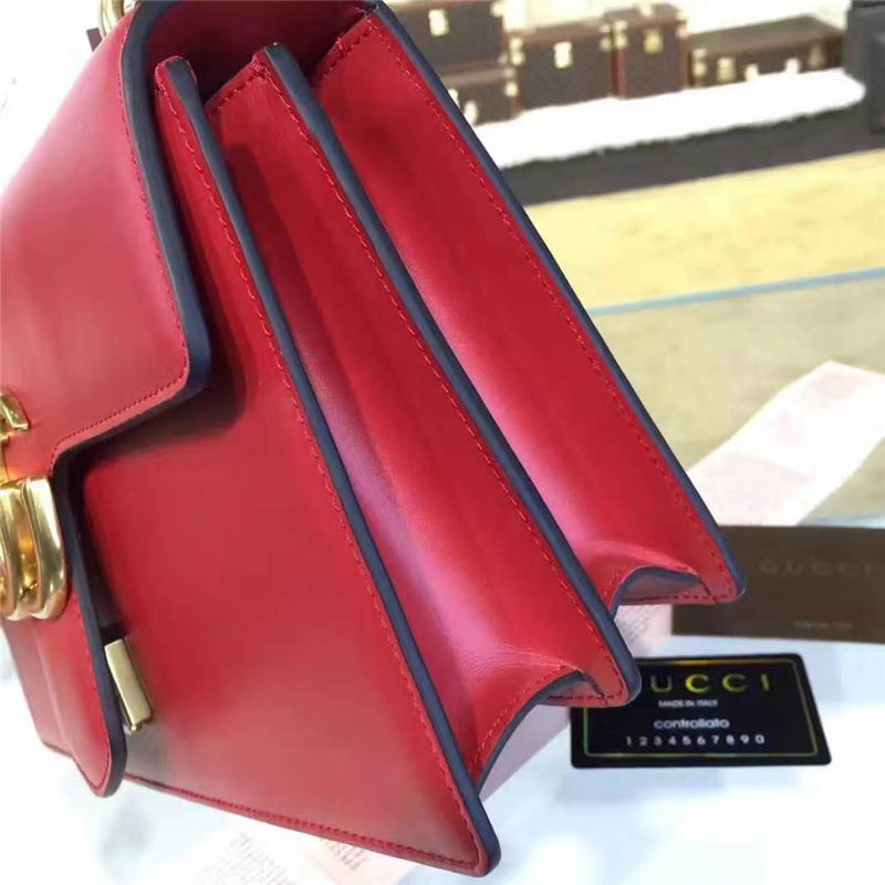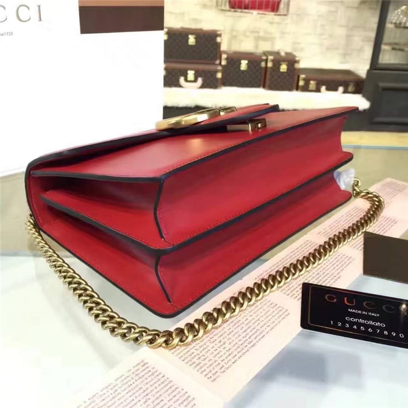 - A431777 Gucci 进口头层皮 复古翻盖 链条单肩包 红色