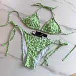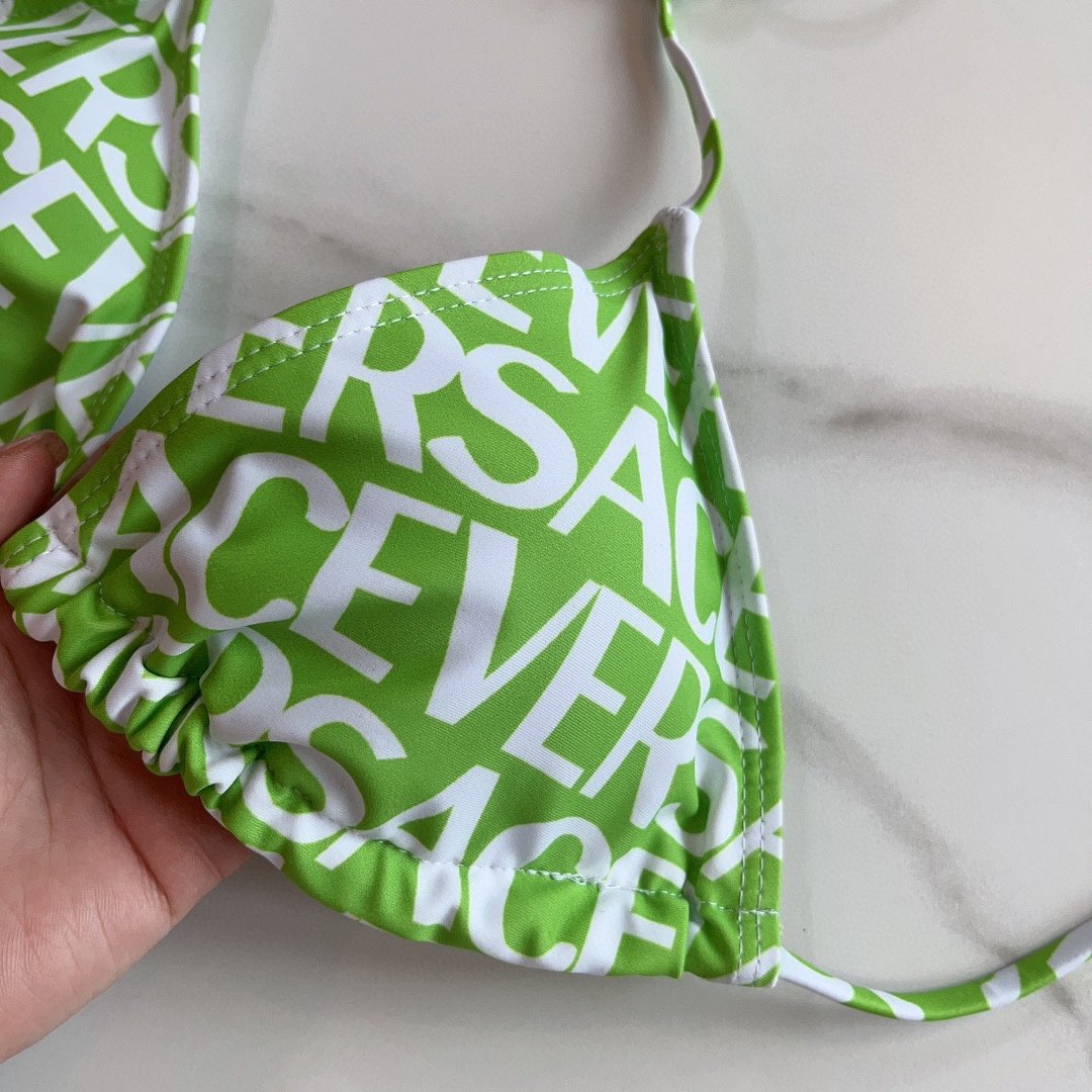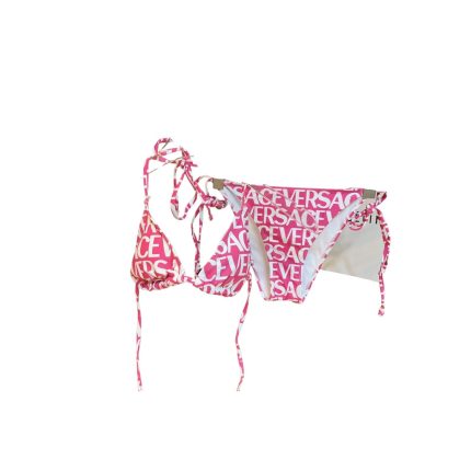 This triangle bikini top features the Versace Allover logo with a metallic outline. The beachwear style can be worn with matching bikini