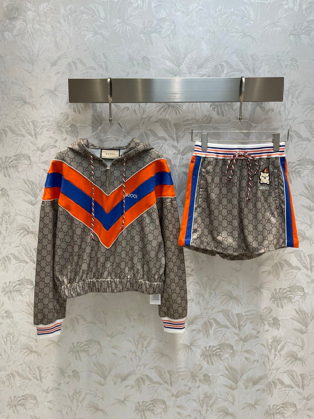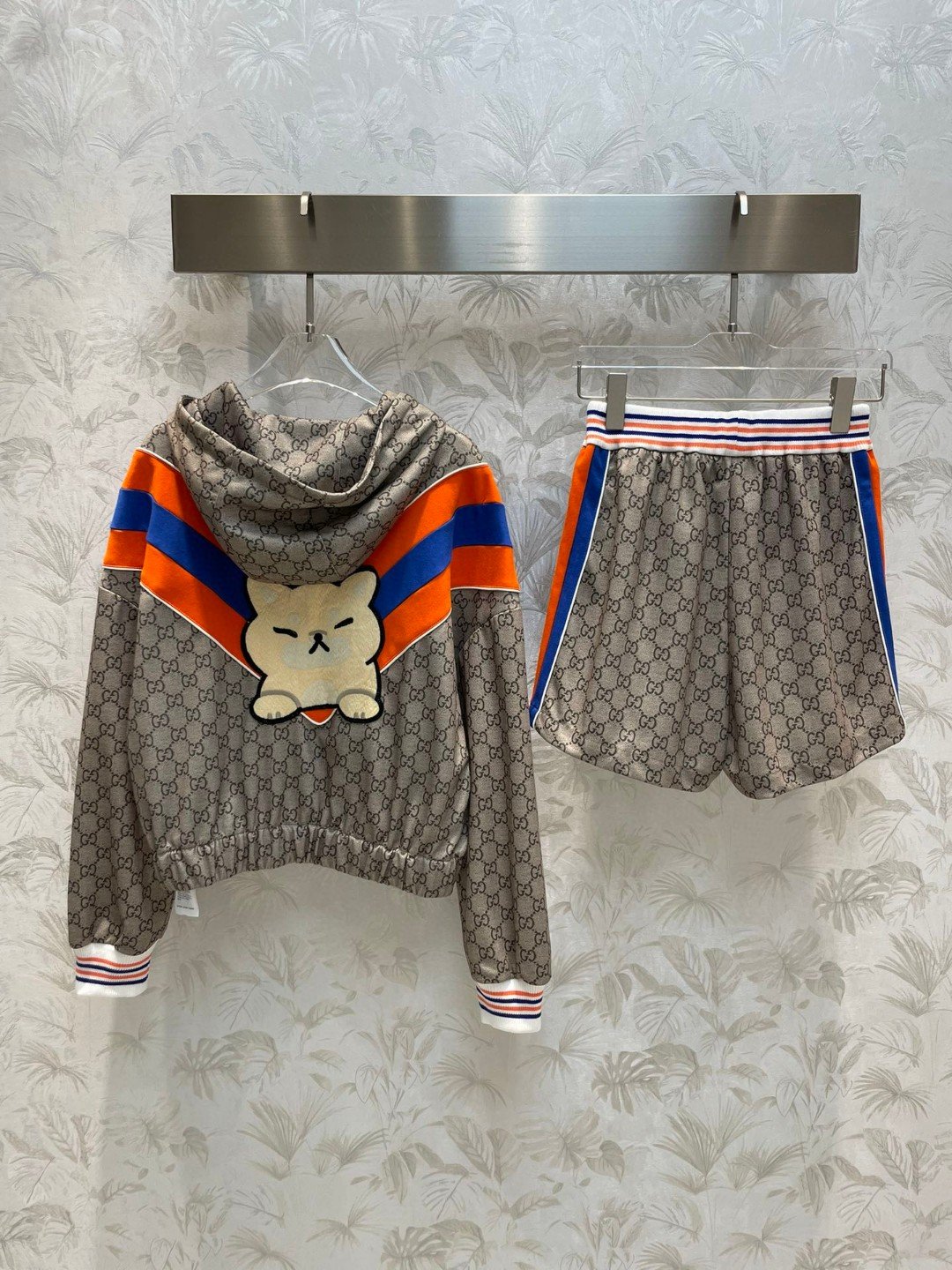 Gucci Animal Embroidered Patch Jacket And Shorts Grey