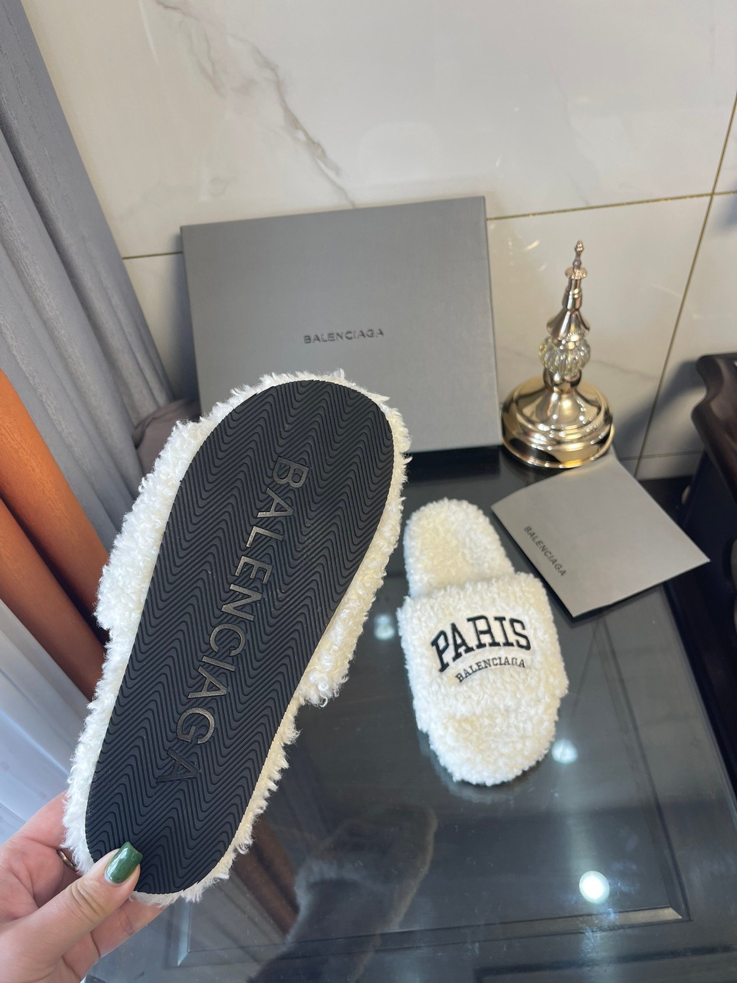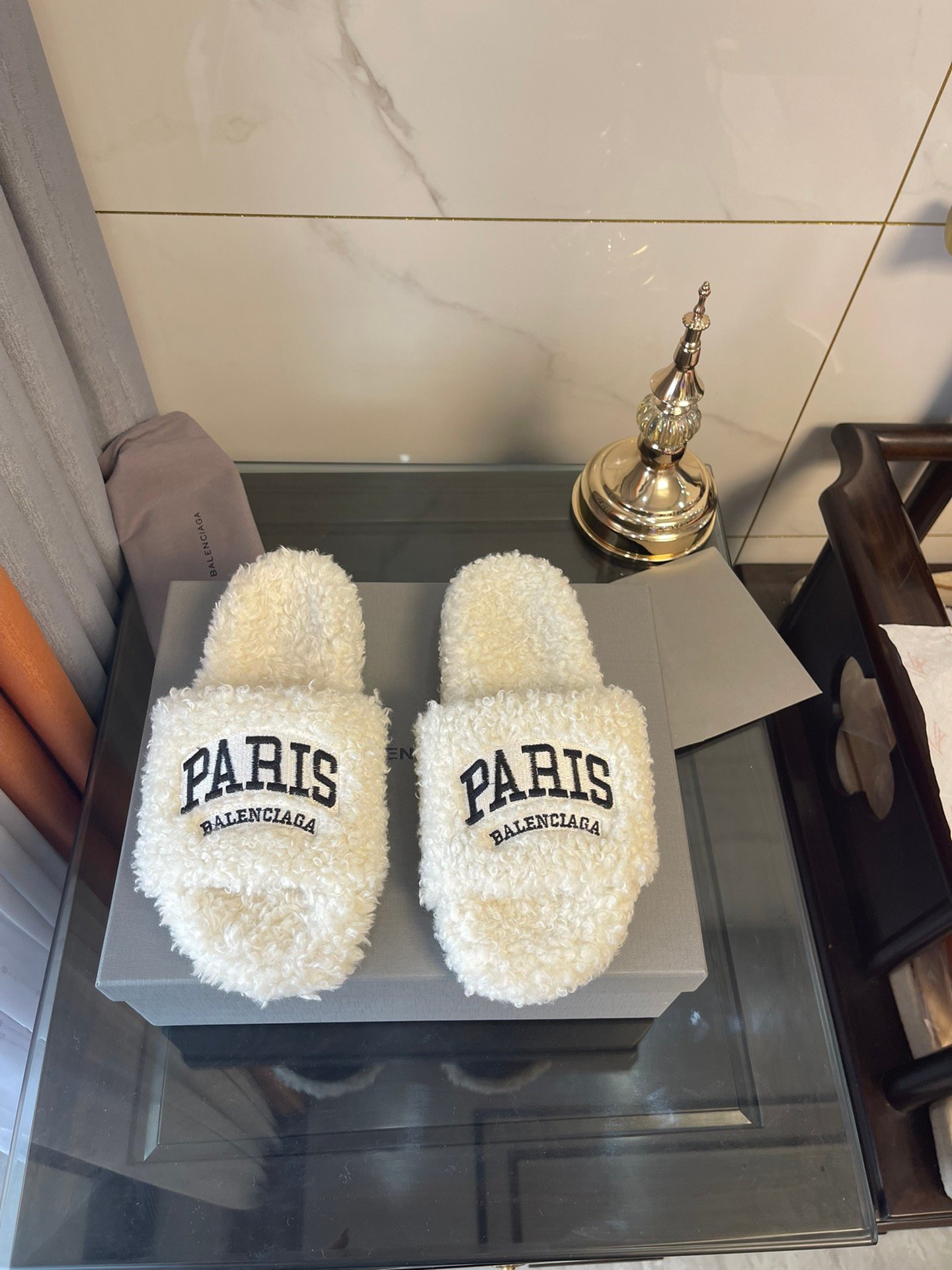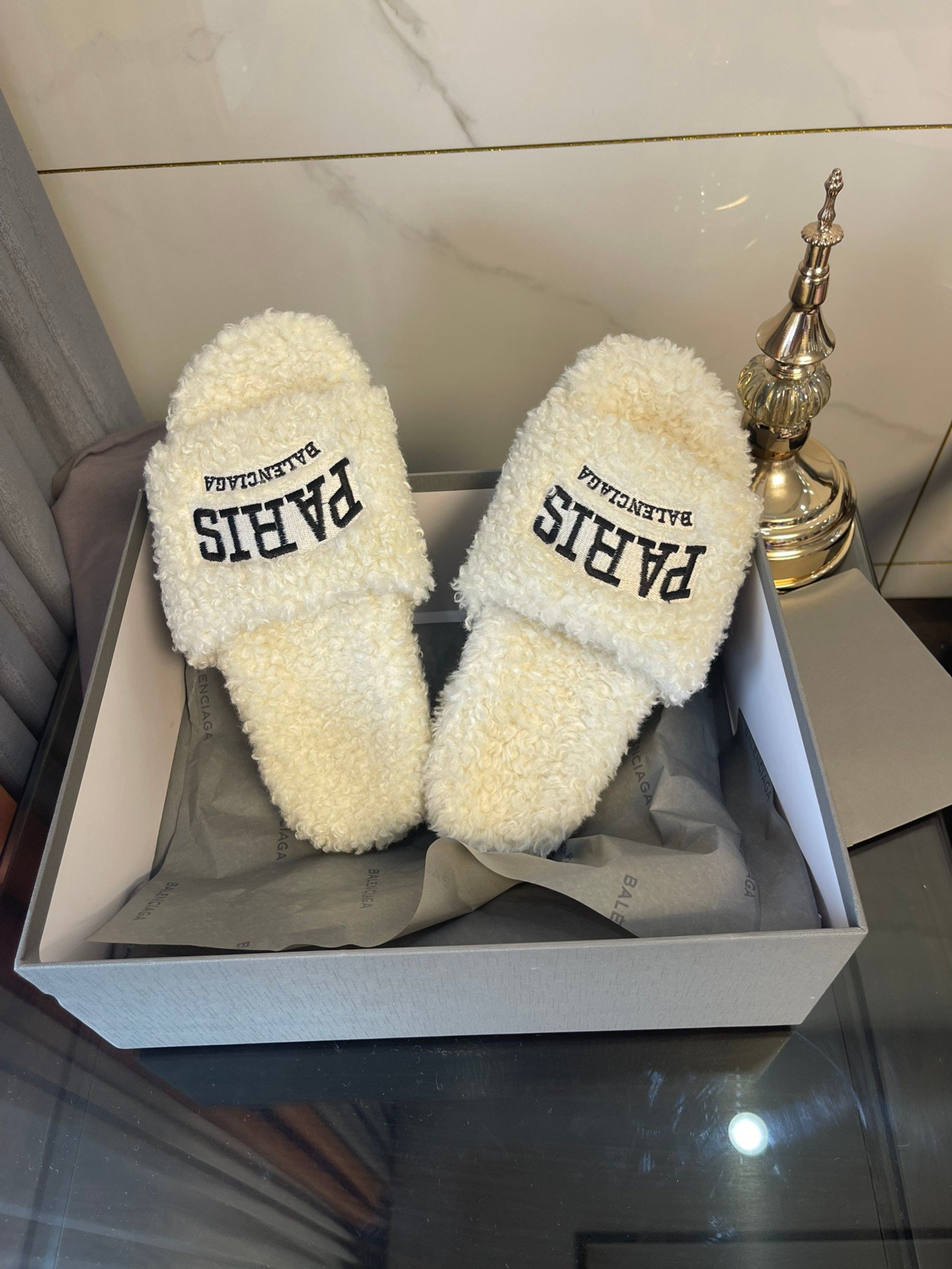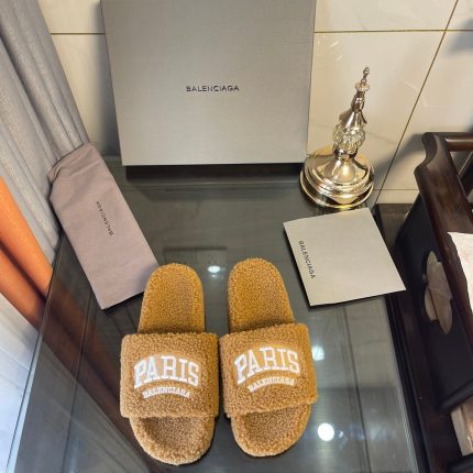 Balenciaga 女式毛茸茸拖鞋白色
