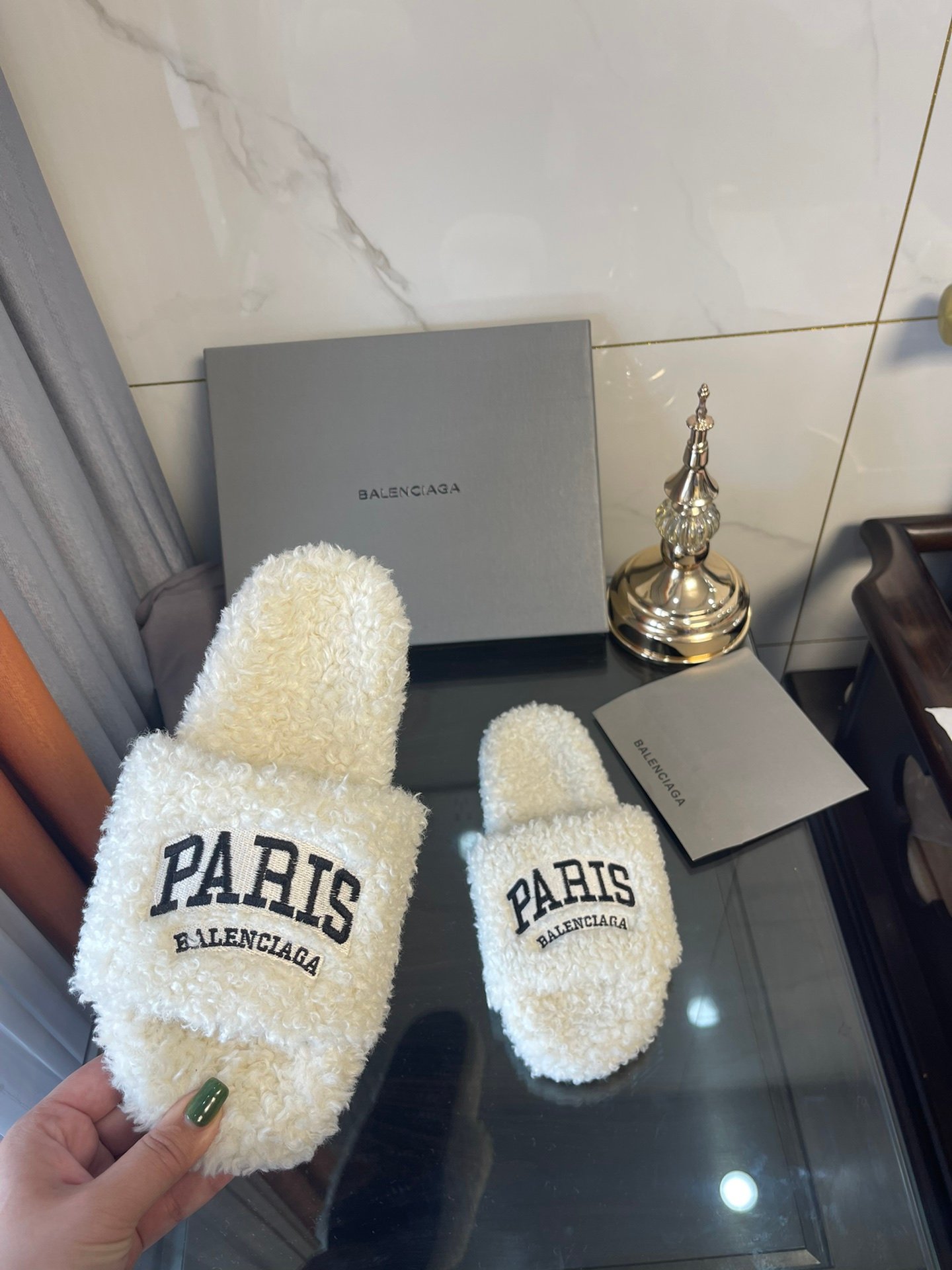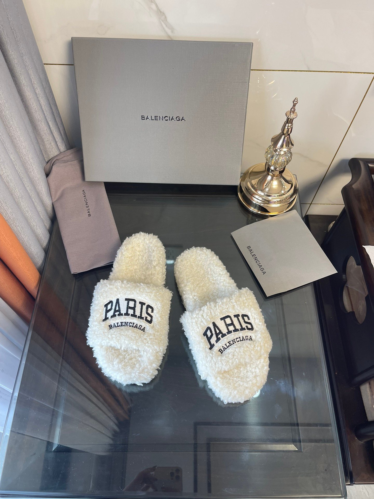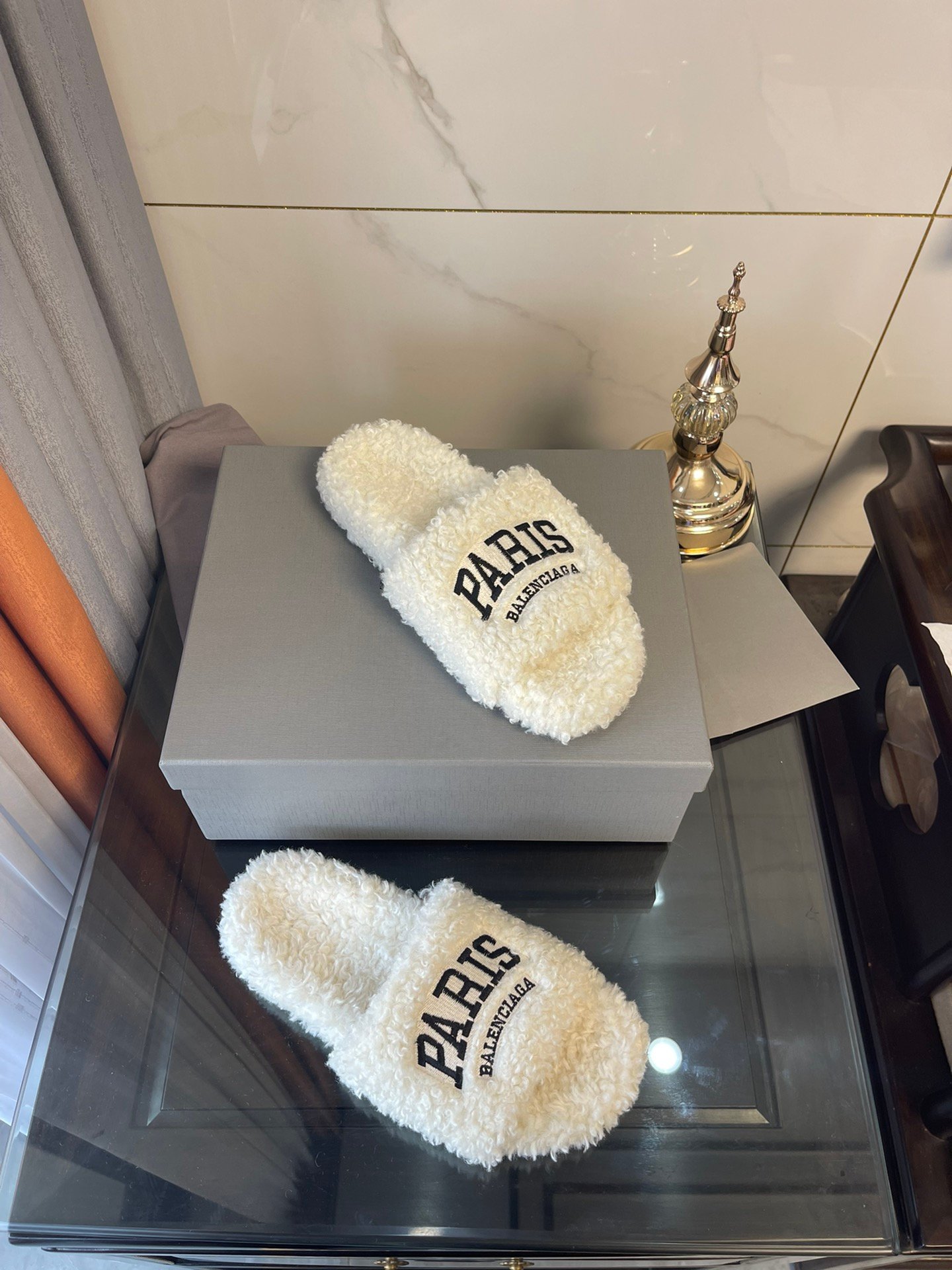 Balenciaga 女式毛茸茸拖鞋白色