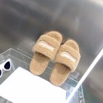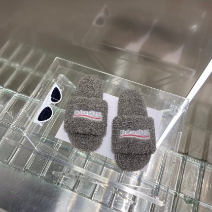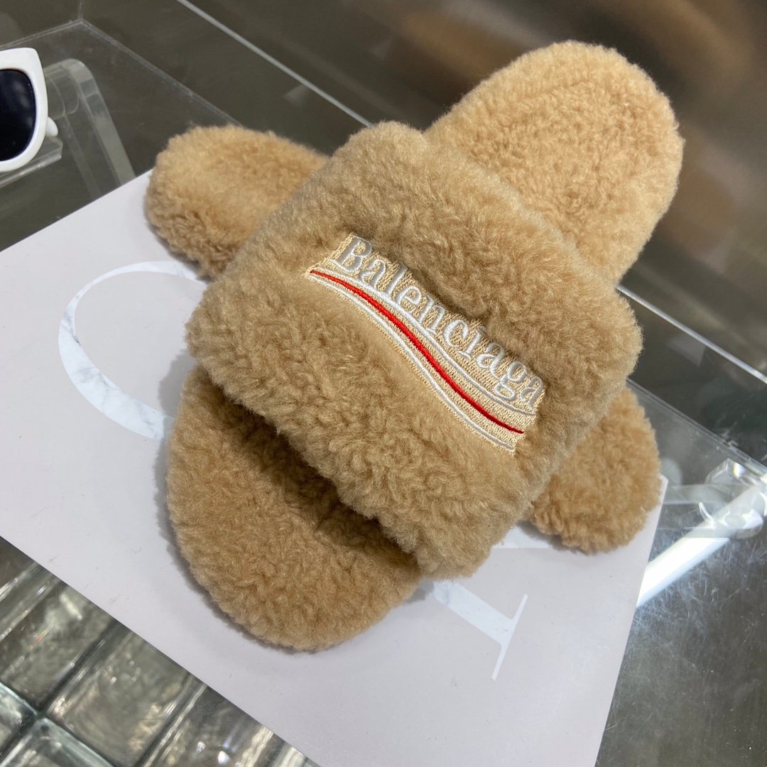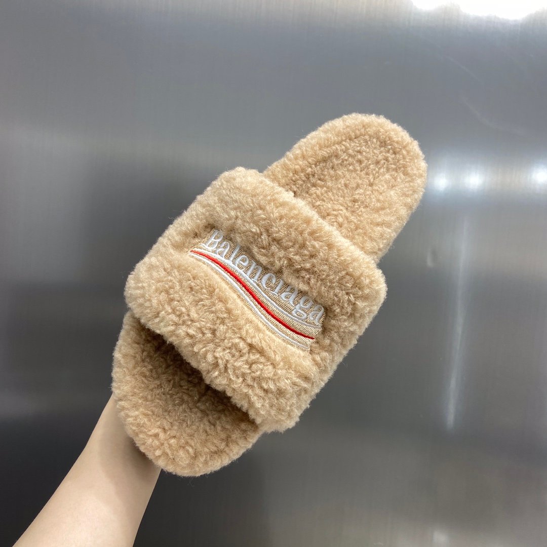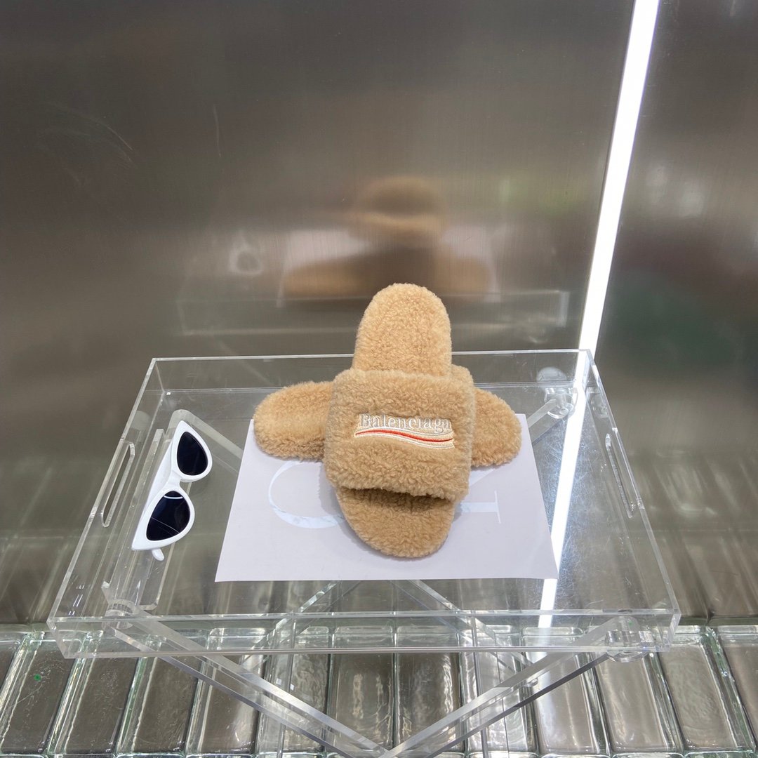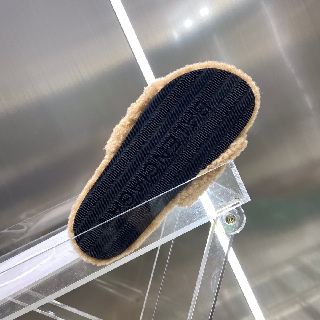 Balenciaga 女式毛茸茸拖鞋米色