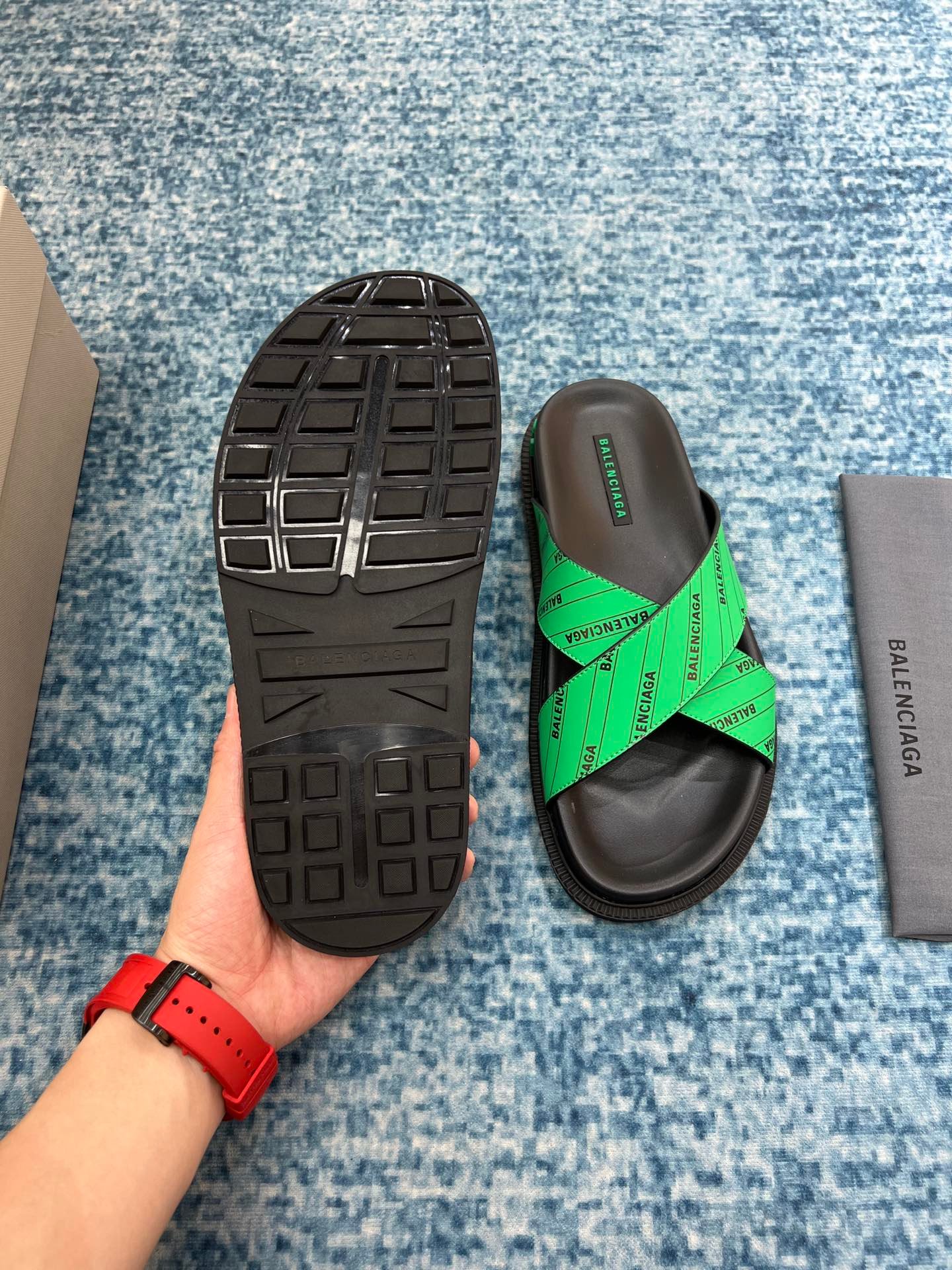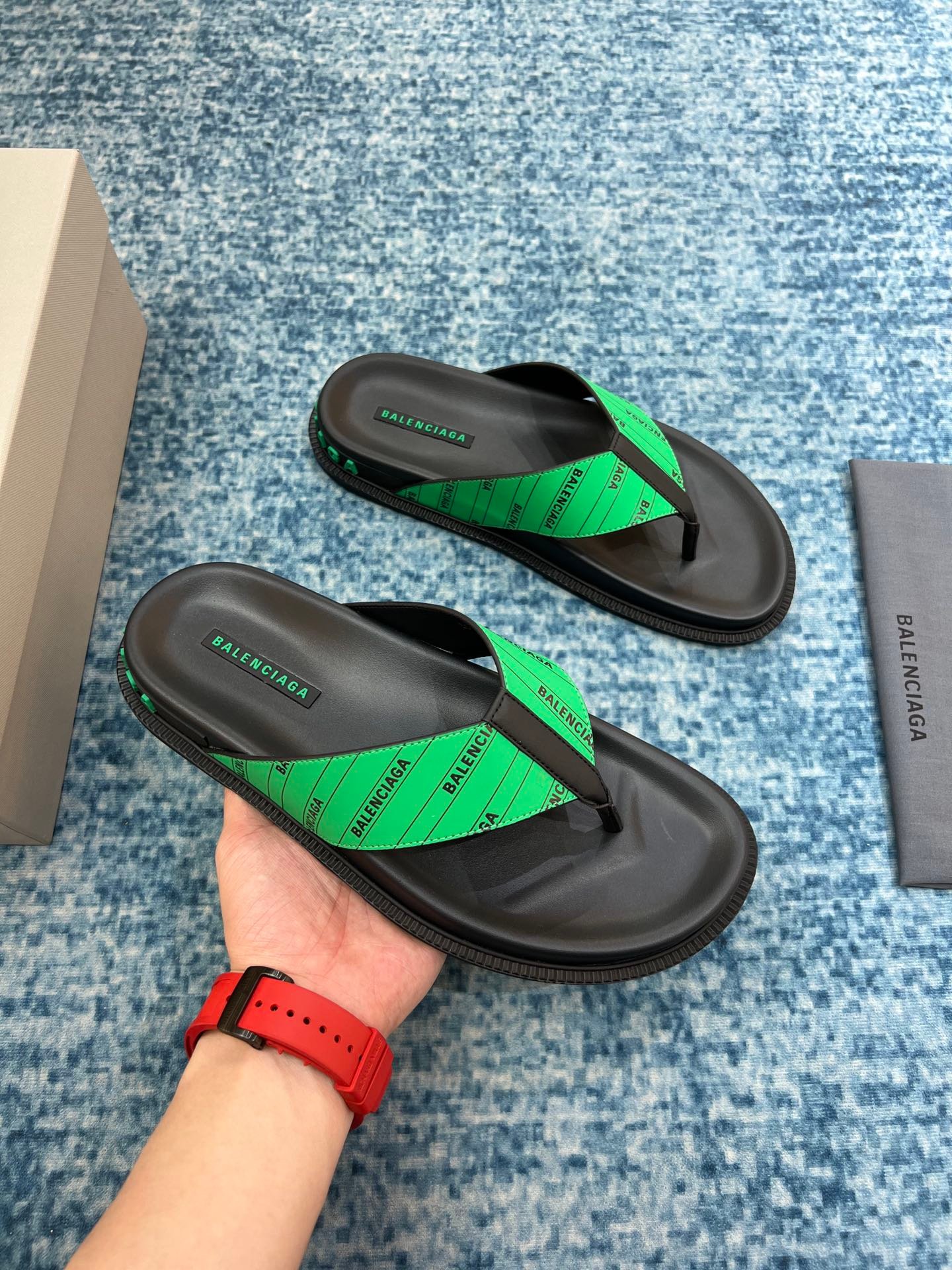 Balenciaga 男士凉鞋黑色/绿色
