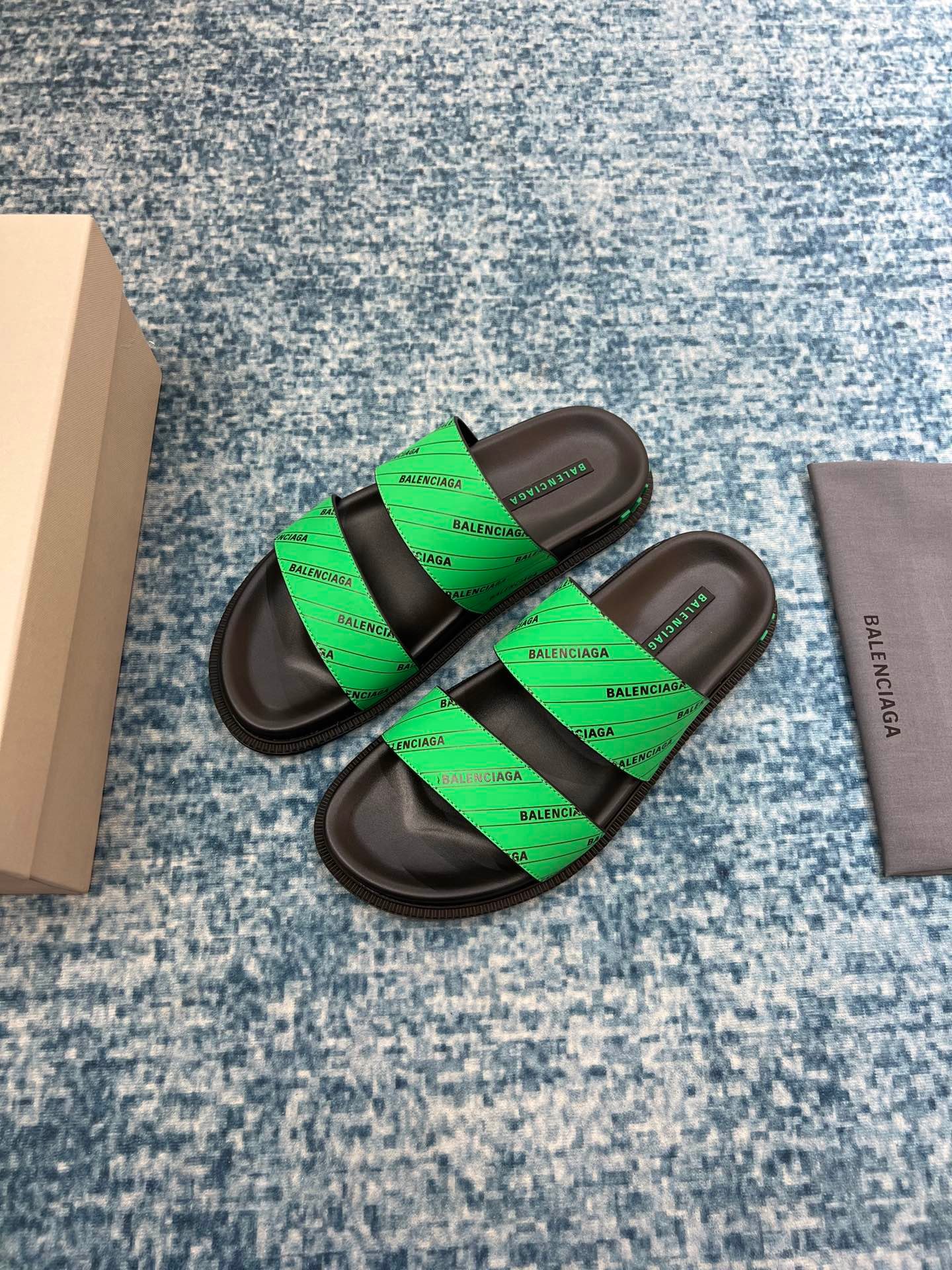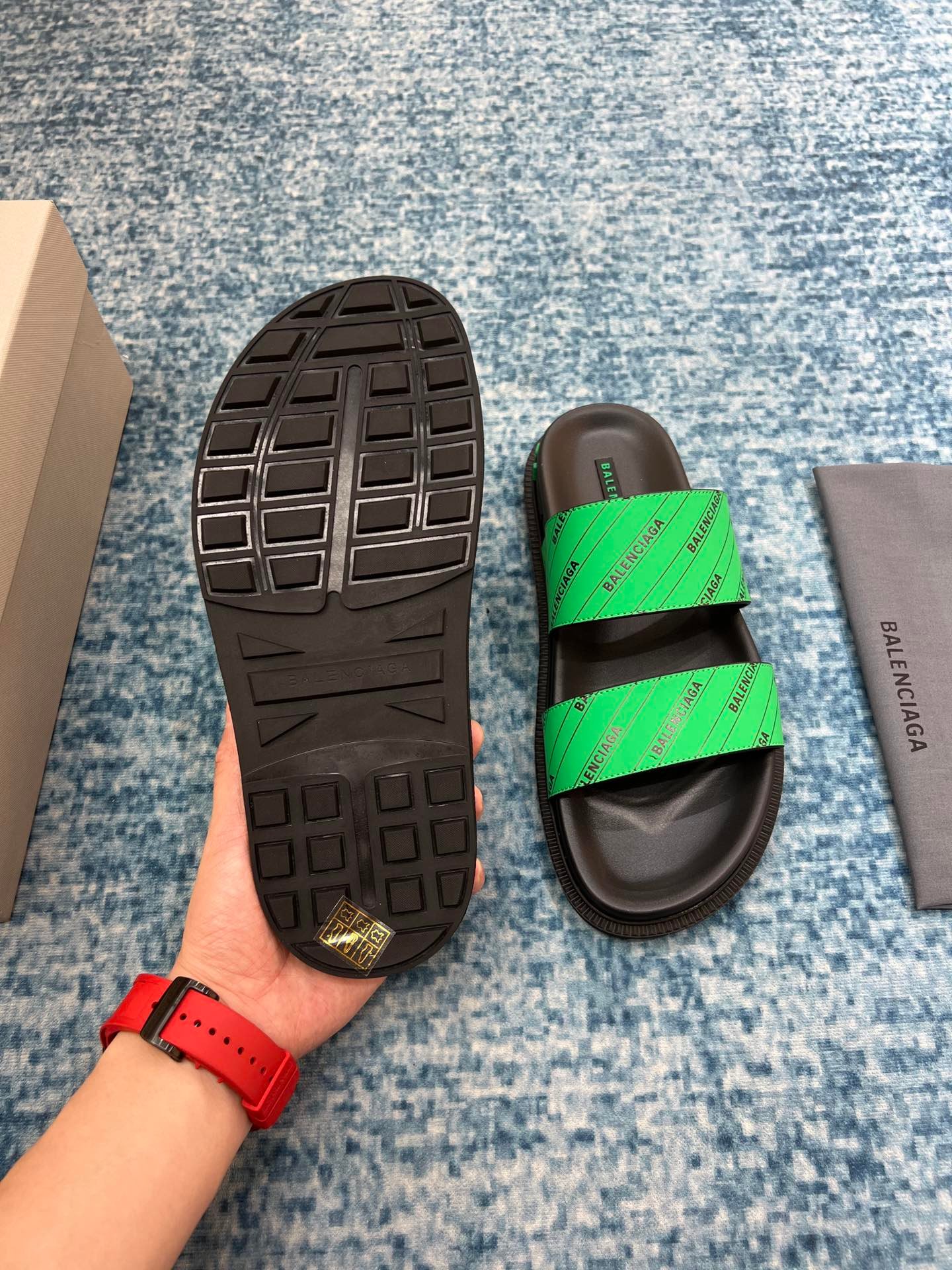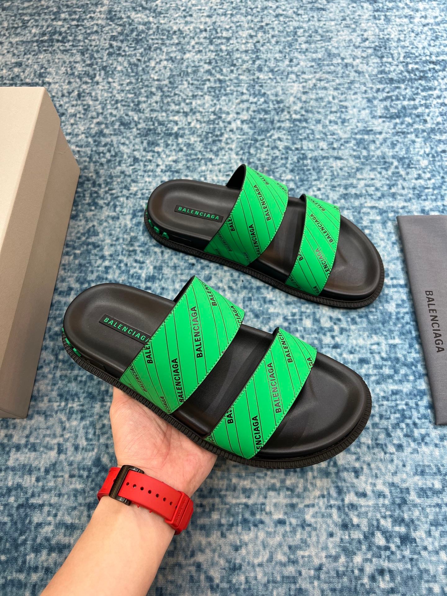 Balenciaga 男士凉鞋黑色/绿色