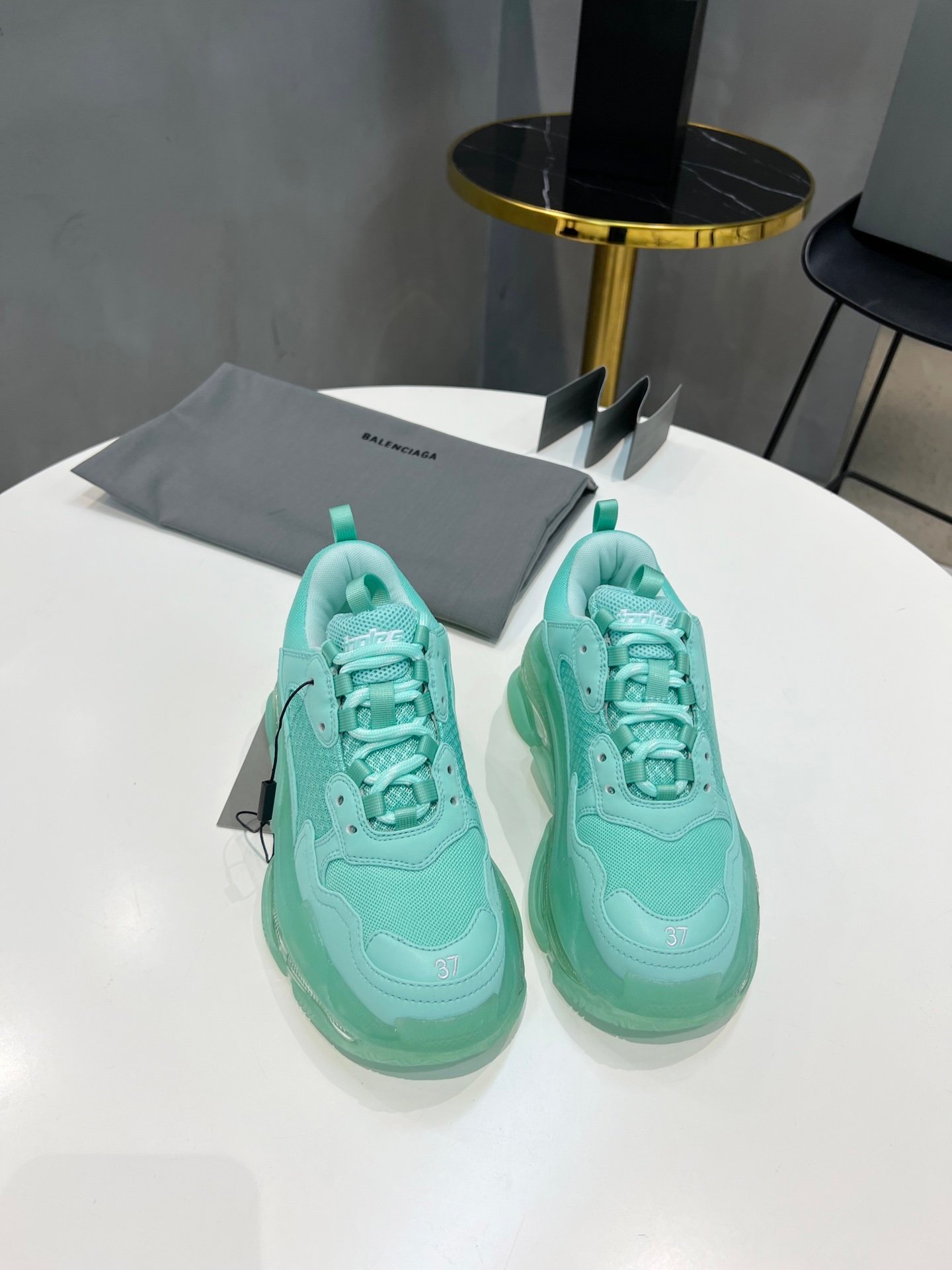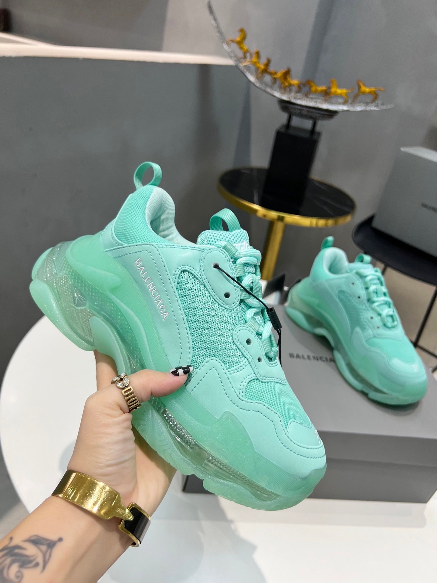 Balenciaga Triple S 女式透明鞋底翡翠绿运动鞋
