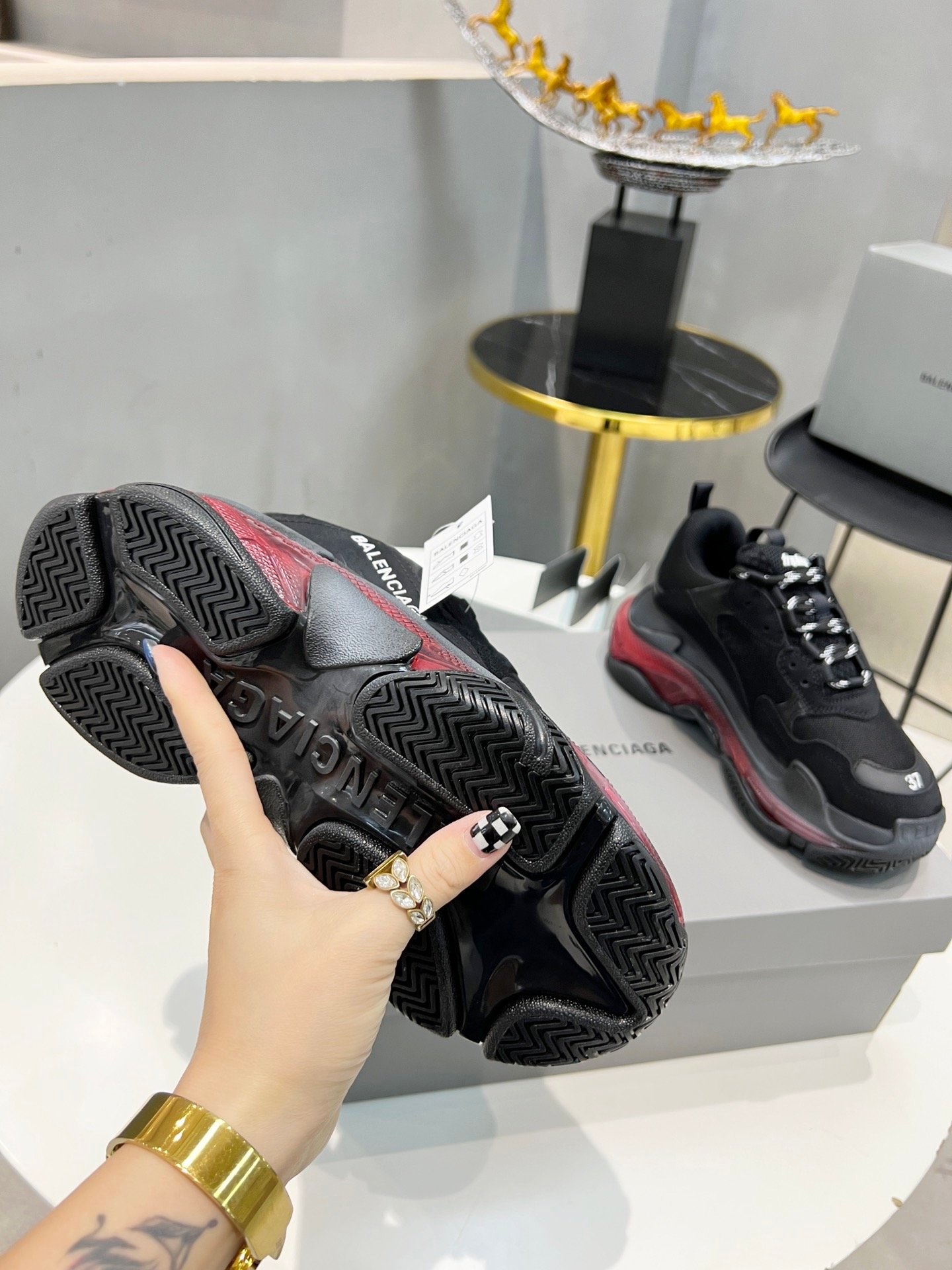 Balenciaga Triple S 女式透明鞋底黑色运动鞋 544351W2FB11000