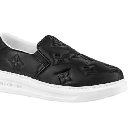Beverly Hills 一脚蹬运动鞋采用柔软的粒面设计,压纹超大版本的标志性 Monogram 图案。该鞋款的特点是其厚实而轻盈的白色橡胶外底,上面刻有路易威登标志。谨慎的弹性嵌片让这款鞋款可以轻松穿脱。