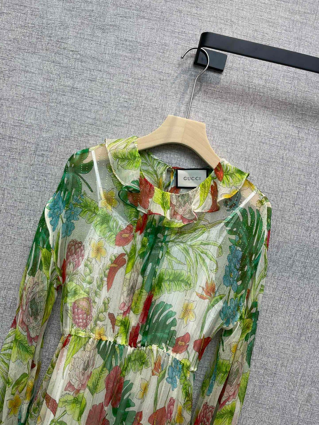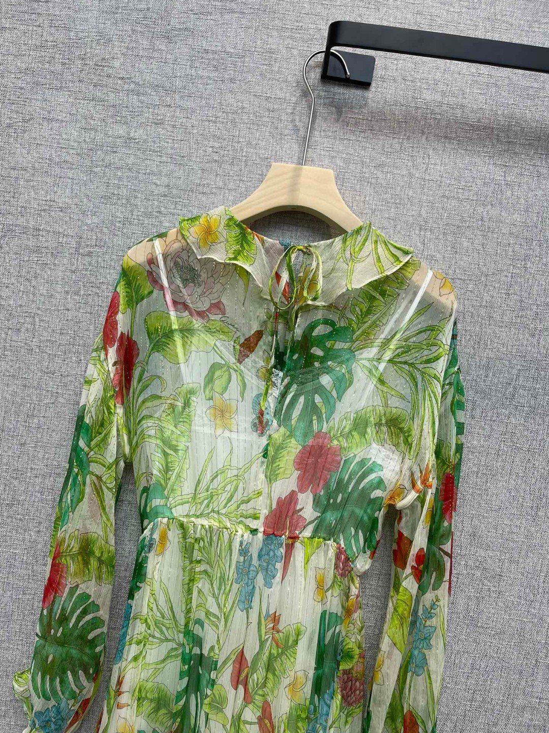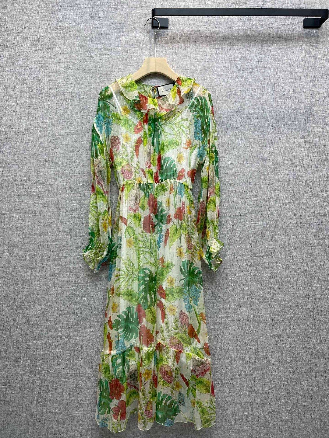 Gucci Botanical Motifs Dress Green