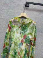 女士绿色植物图案连衣裙