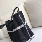 Burberry巴宝莉 手提包 涂鸦印花 Canvas 格纹 双面购物袋 黑白色