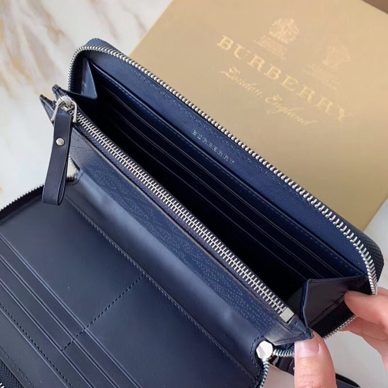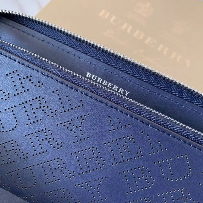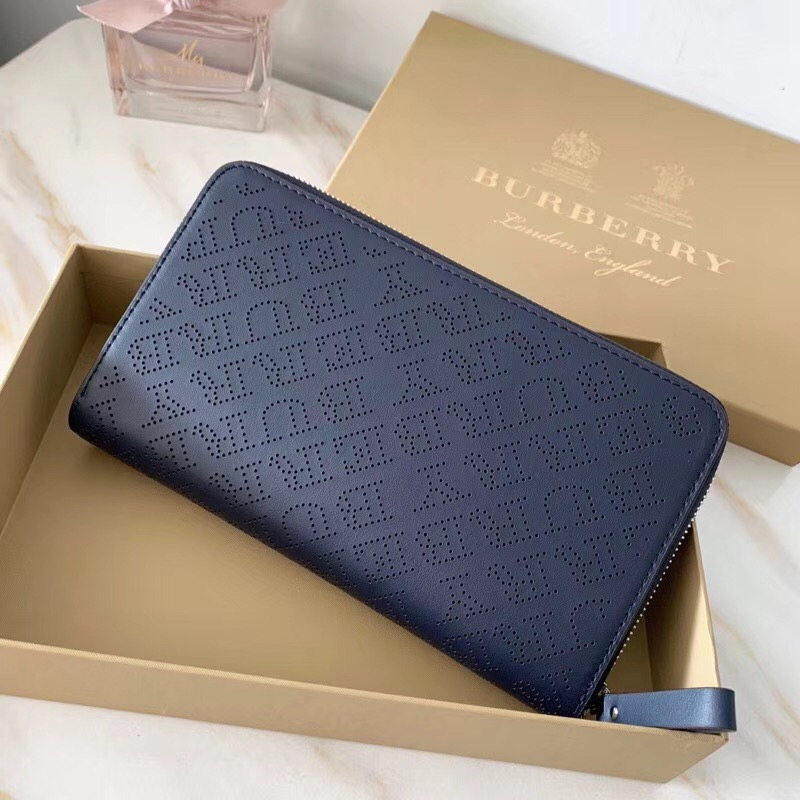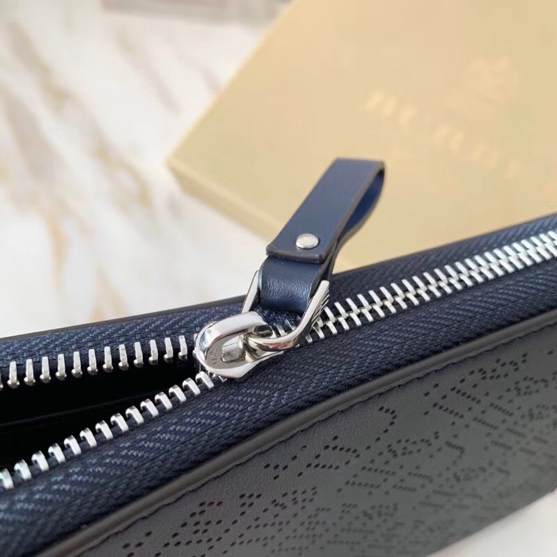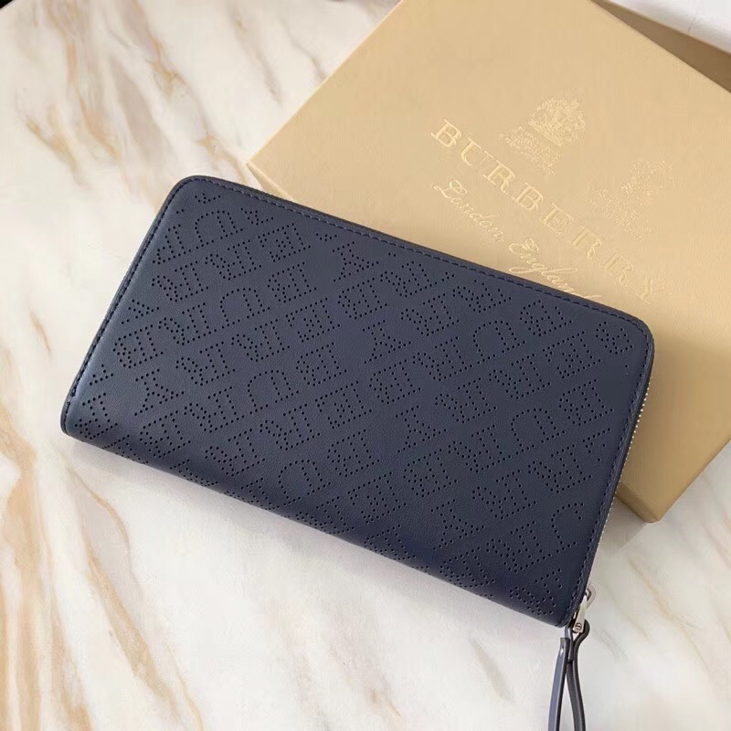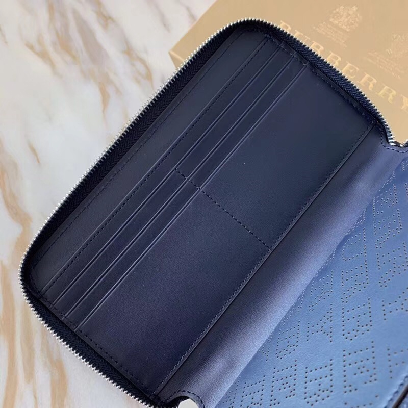 - Burberry巴宝莉 激光冲孔式纹案 皮革 全拉链钱夹 深蓝色