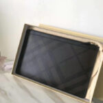 - Burberry巴宝莉 House 格纹拼粒纹皮革 拉链收纳袋 黑啡