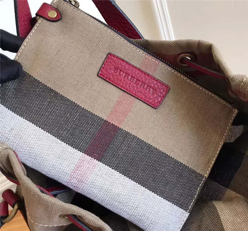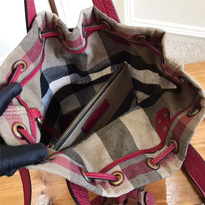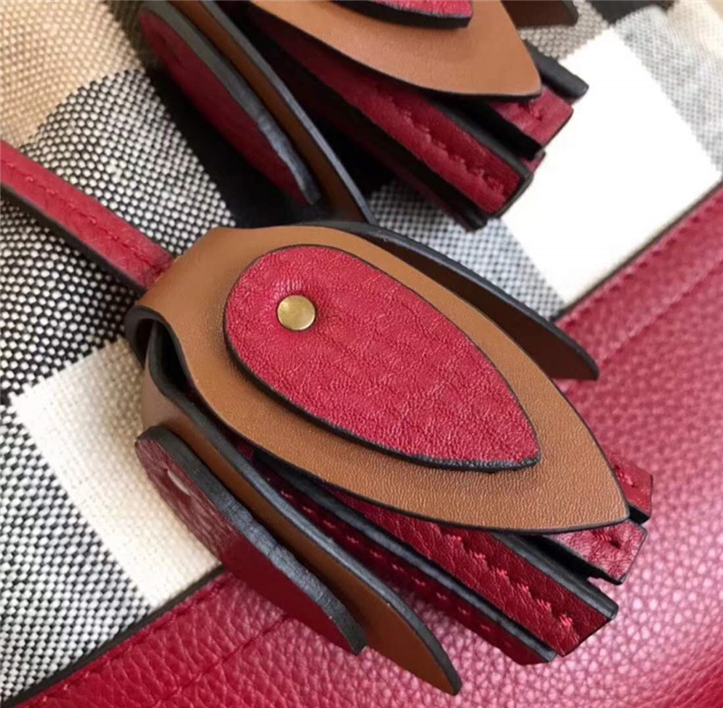 - Burberry手提包 巴宝莉女包 最新款格纹水桶包 可拆式小包 红色