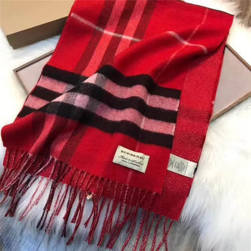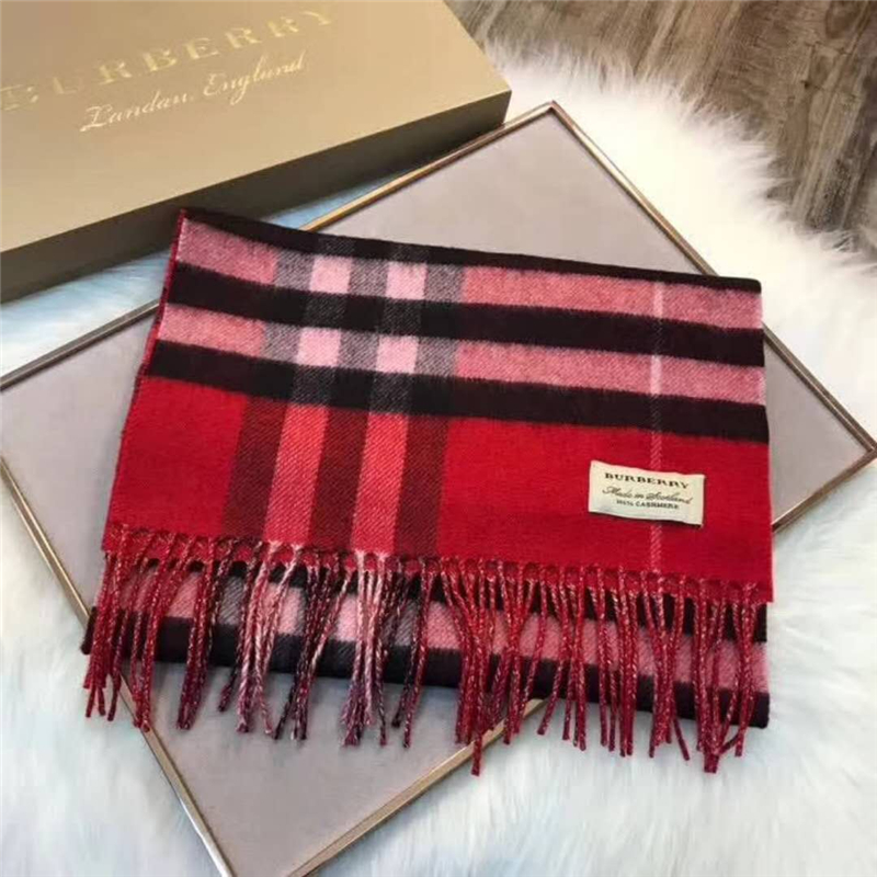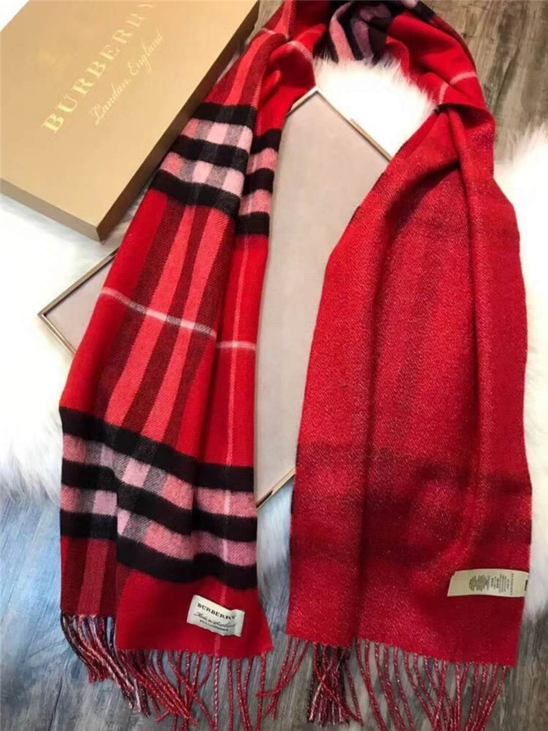• Burberry 巴宝莉 17年最新款 双面两用 金属感格纹 羊绒围巾 红色