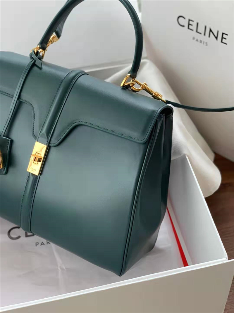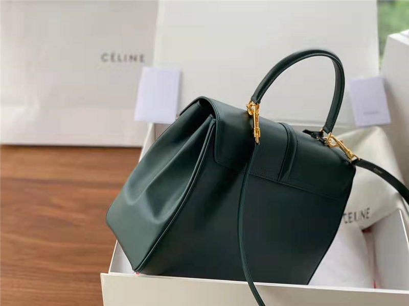- Celine包包 赛琳女负 19新款 金属锁扣 中号小牛皮包 Celine手提包女包 绿色