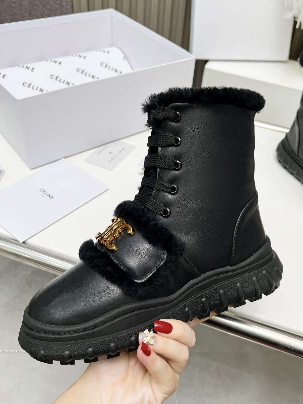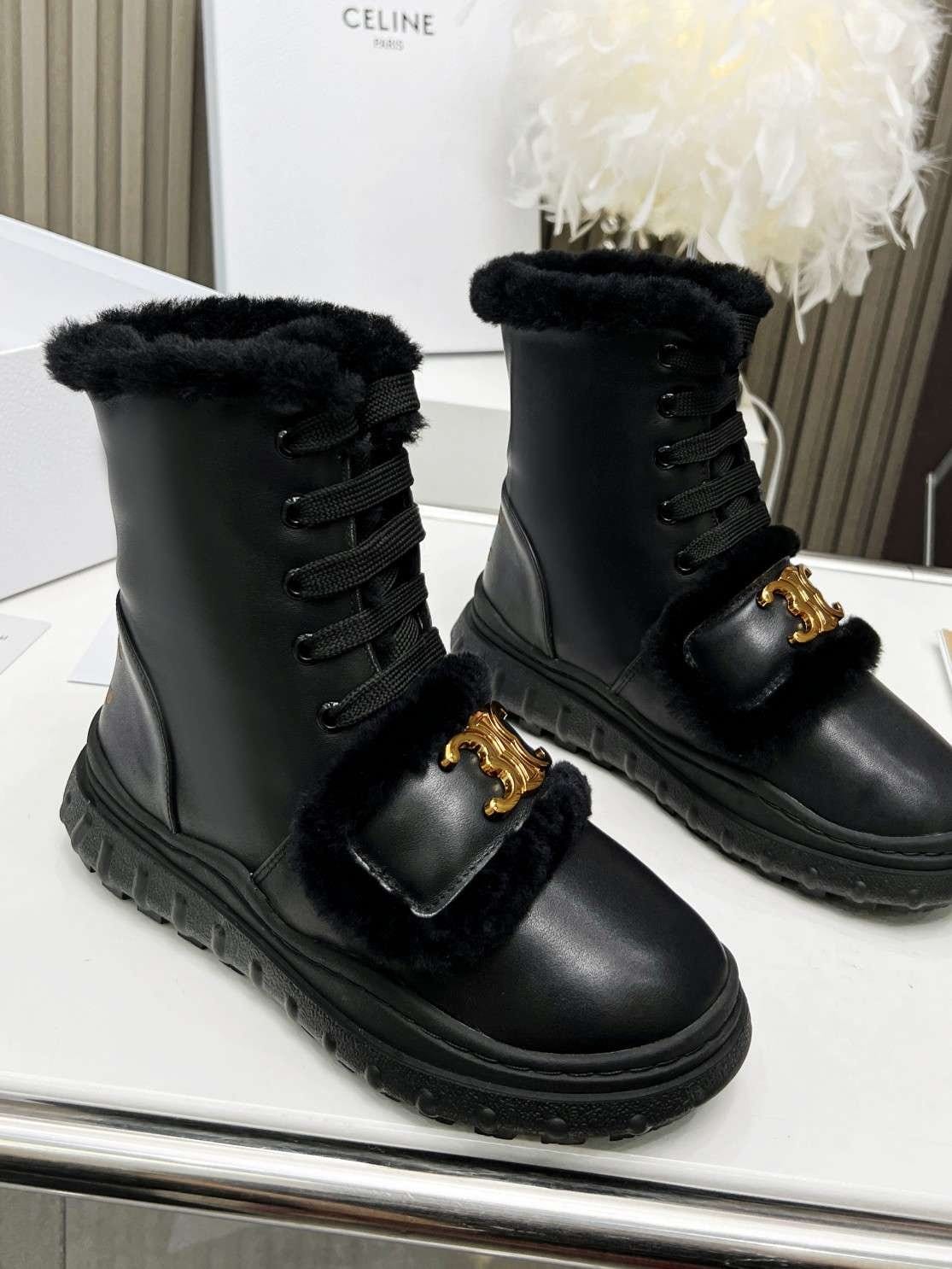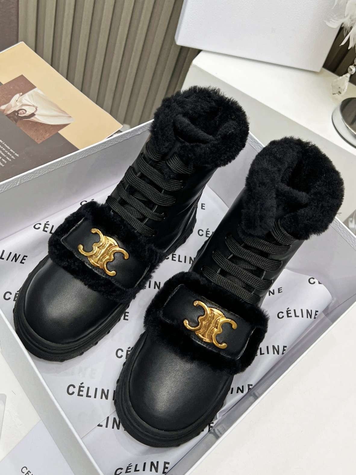 Celine 毛皮黑色靴子