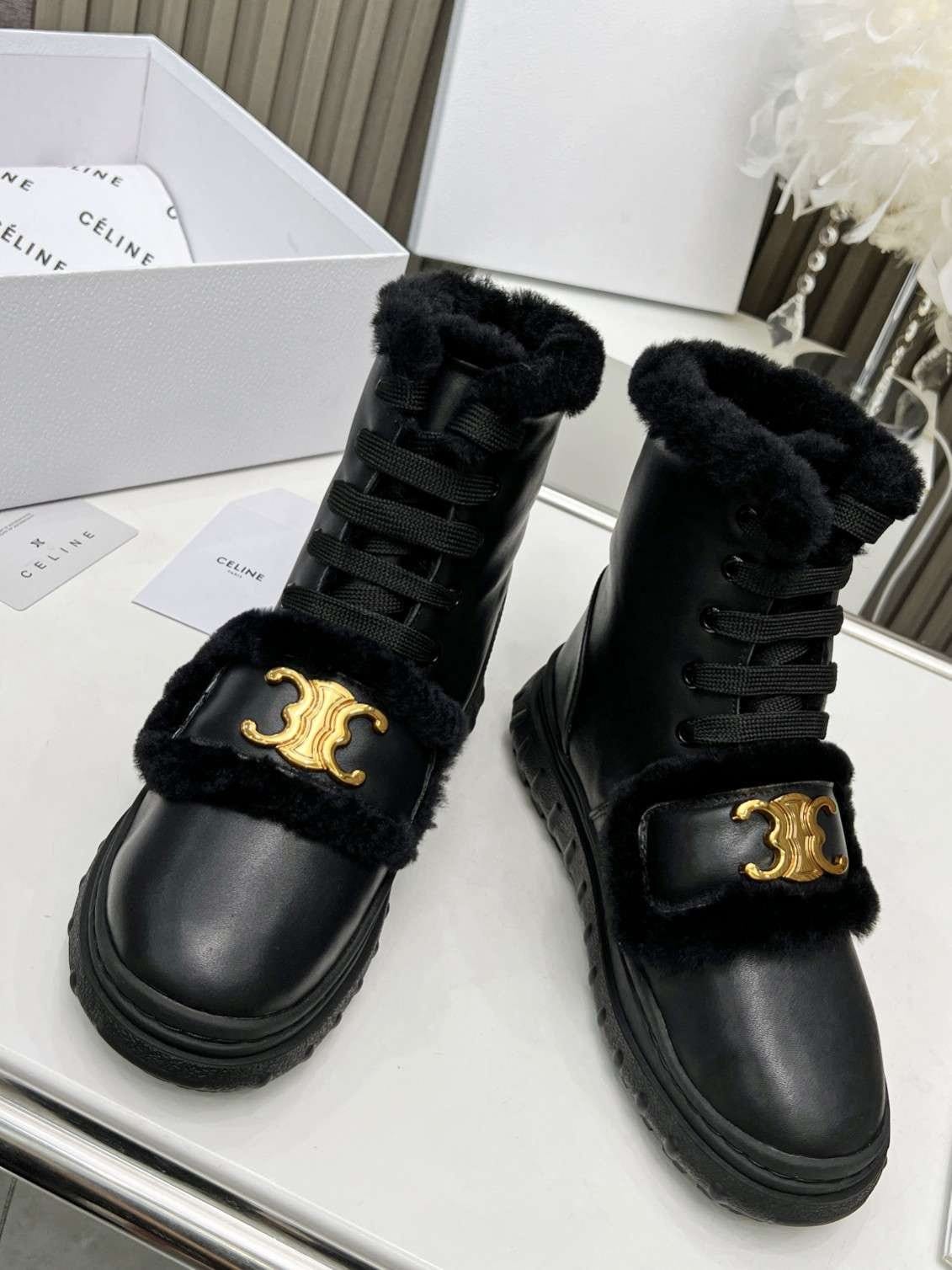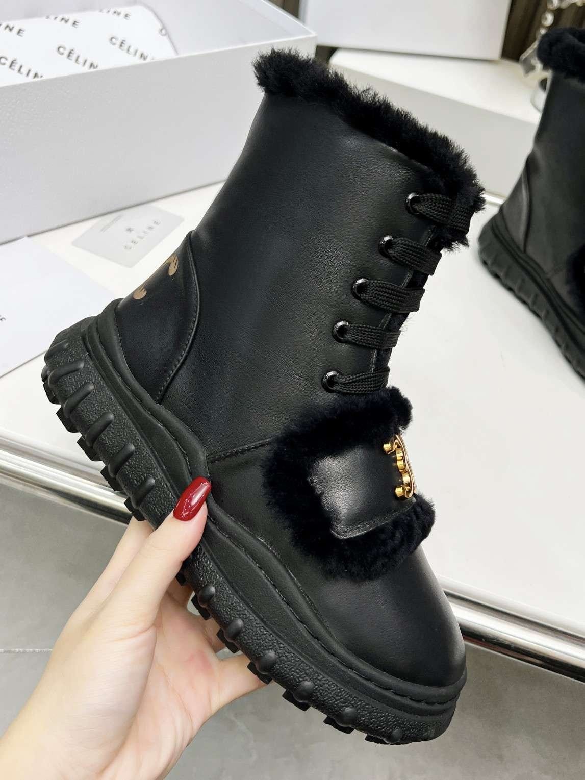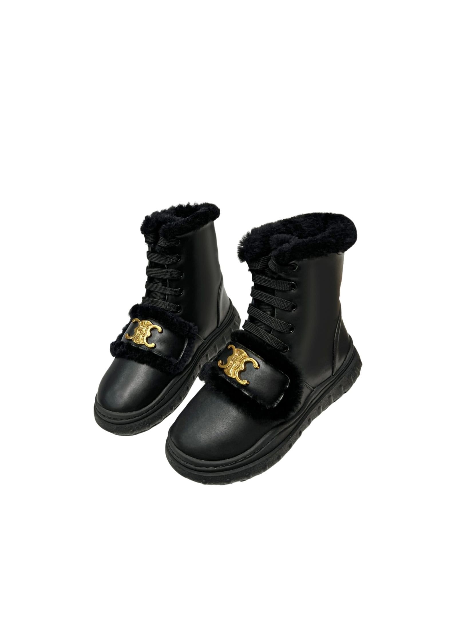 Celine 毛皮黑色靴子