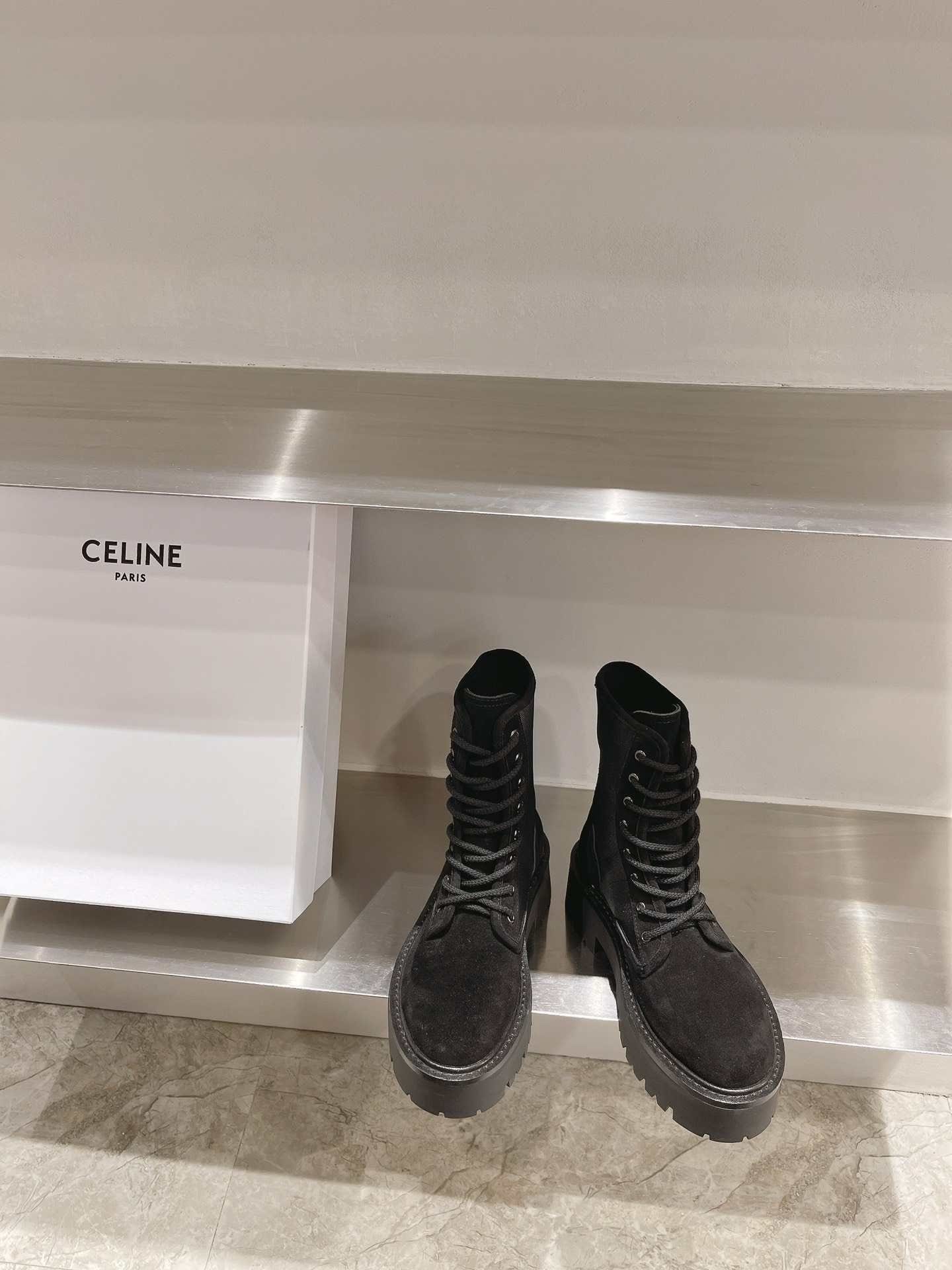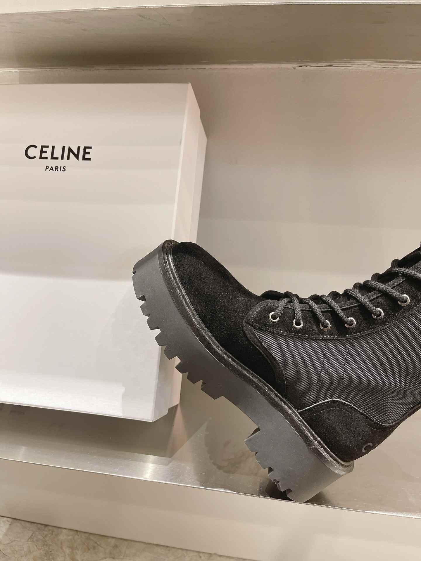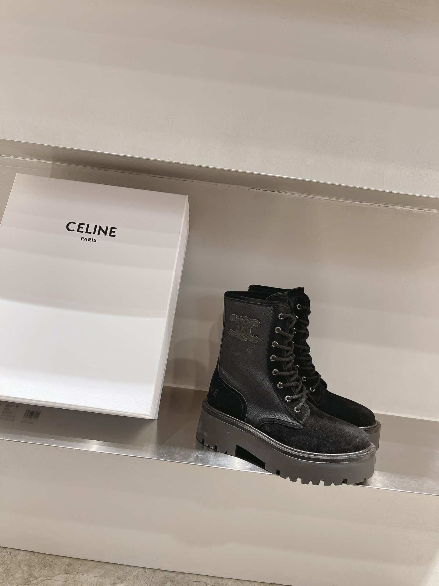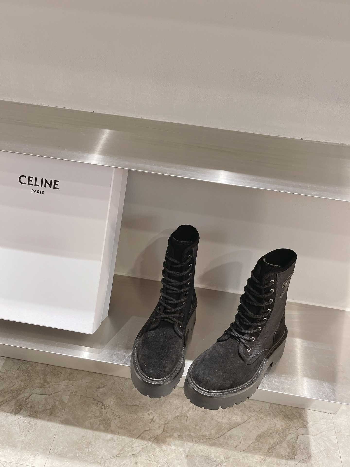 Celine Bulky 系带靴,搭配 Triomphe Black