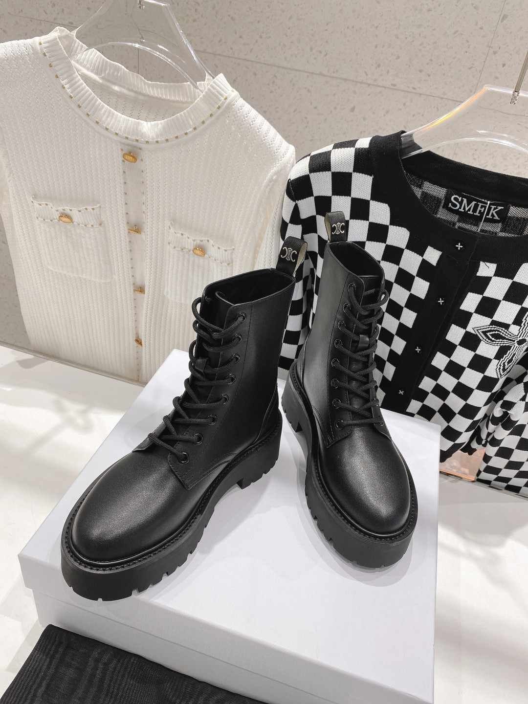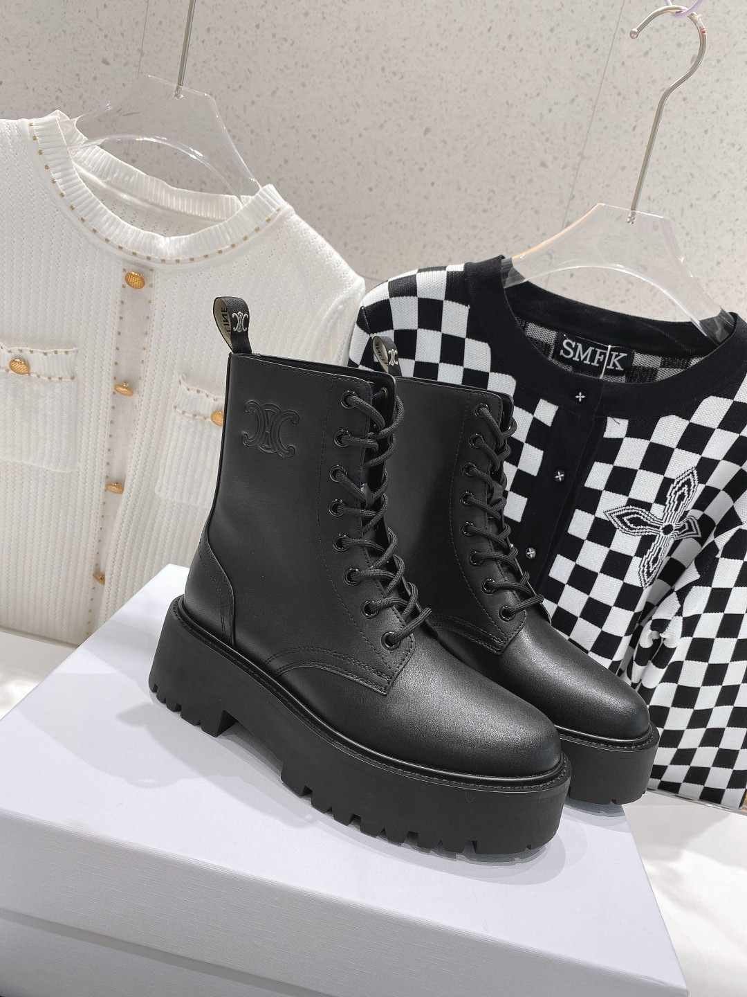 Celine 系带靴,搭配 Triomphe Black