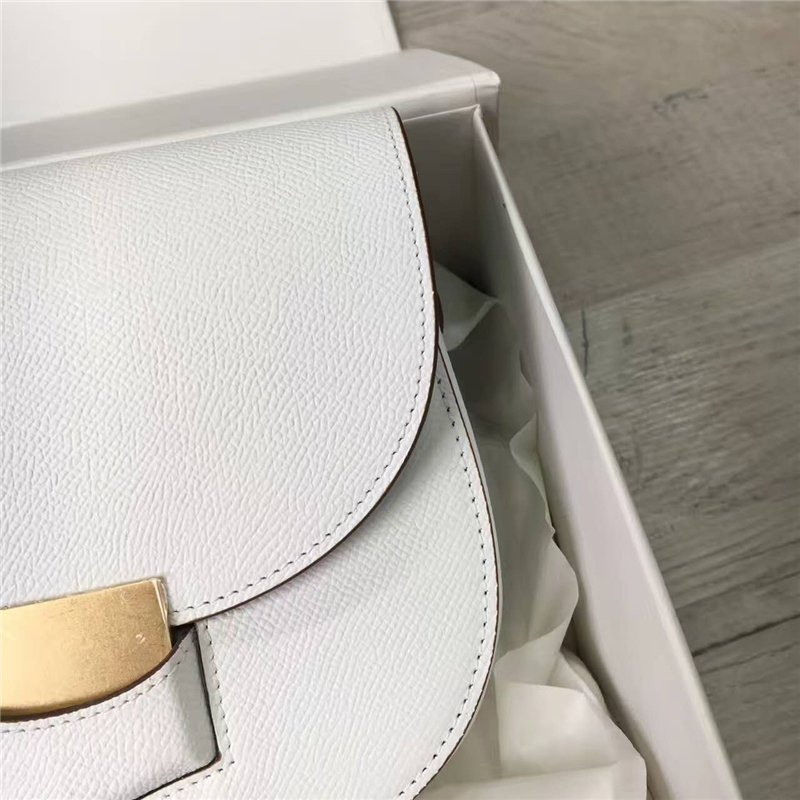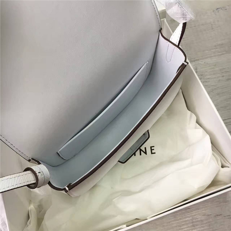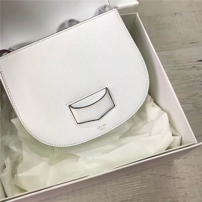 - 详细介绍:Celine 赛琳 Trotteur 小号牛皮女士单肩斜挎翻盖复古包马鞍包,马鞍包身形很讨喜,超级简洁的小包,圆润小巧可爱,简 单小翻盖设计,浓浓的复古感!完美走线,保证耐用美观。包扣采用高档复古五金,挂镀工艺,保证五金亮丽光泽,不褪色 。后幅附有插袋,时尚而使用方便,插袋可以放手机零钱。最简单的白色,却能搭配任何颜色,而五彩缤纷的颜色,也因为白色的存在才能凸显出各自的优点。简约、低调,够百搭,简直就是Celine的气质代表 !