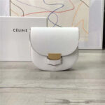 - Celine 赛琳 Trotteur 小号牛皮 金扣 女士单肩斜挎翻盖复古包马鞍包 手掌白