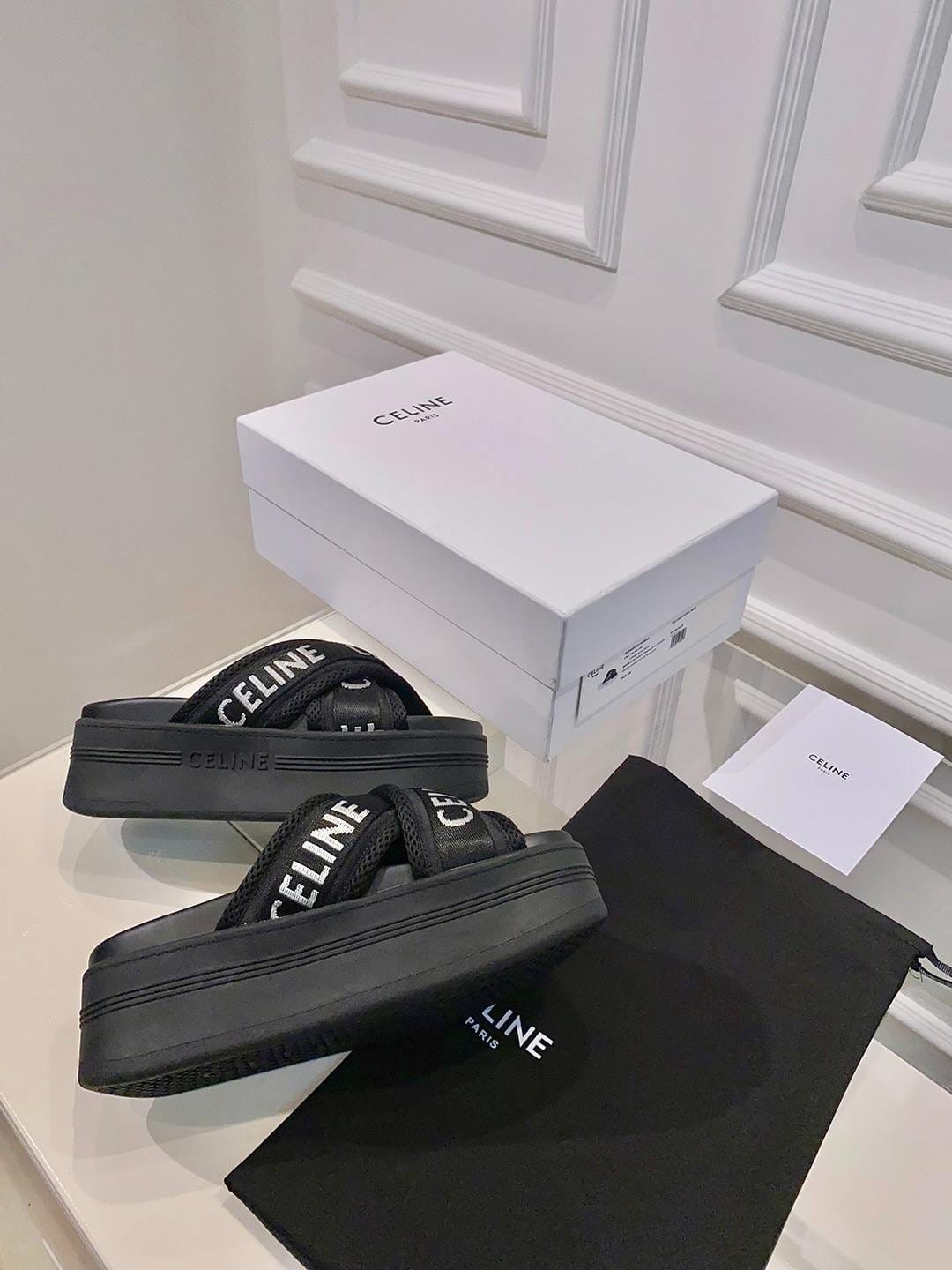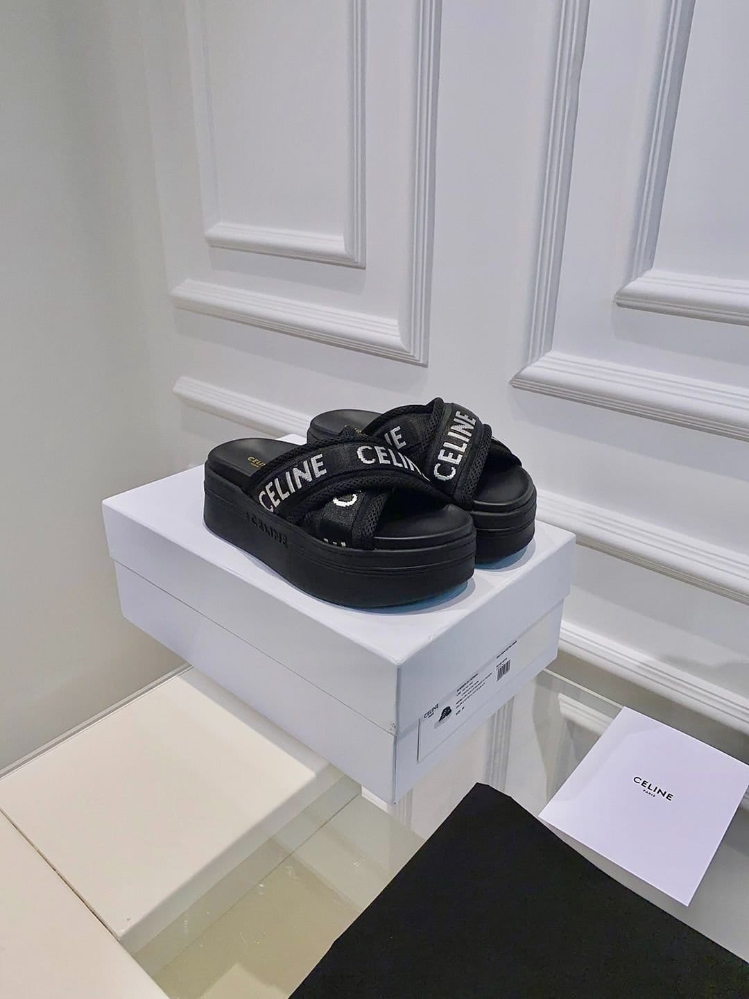 Celine Block 滑道采用网布和织物制成,带 Celine 提花黑色 – 354412276C.38AB