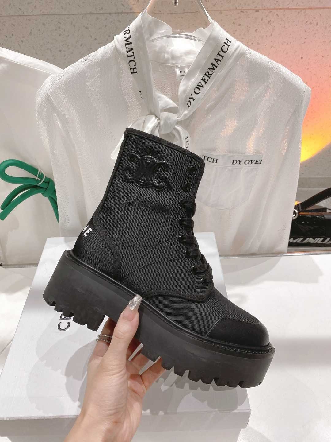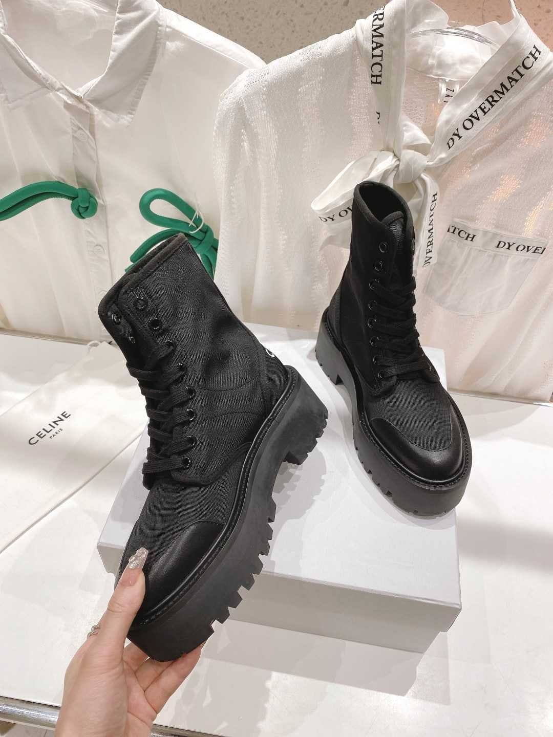 Celine Bulky 女式黑色尼龙系带靴 345597004C.38NO
