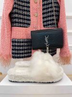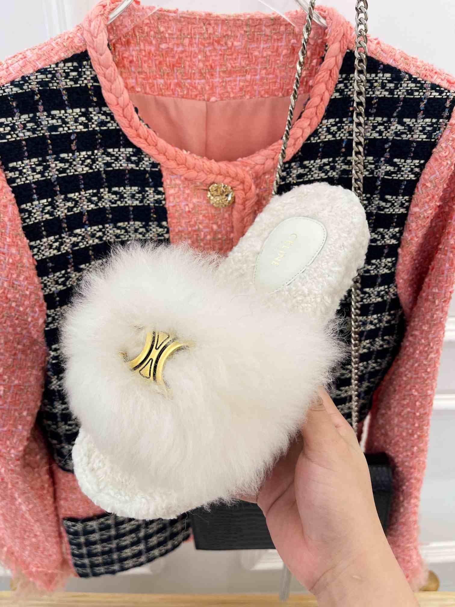 Celine Clea Triomphe 毛皮白色拖鞋