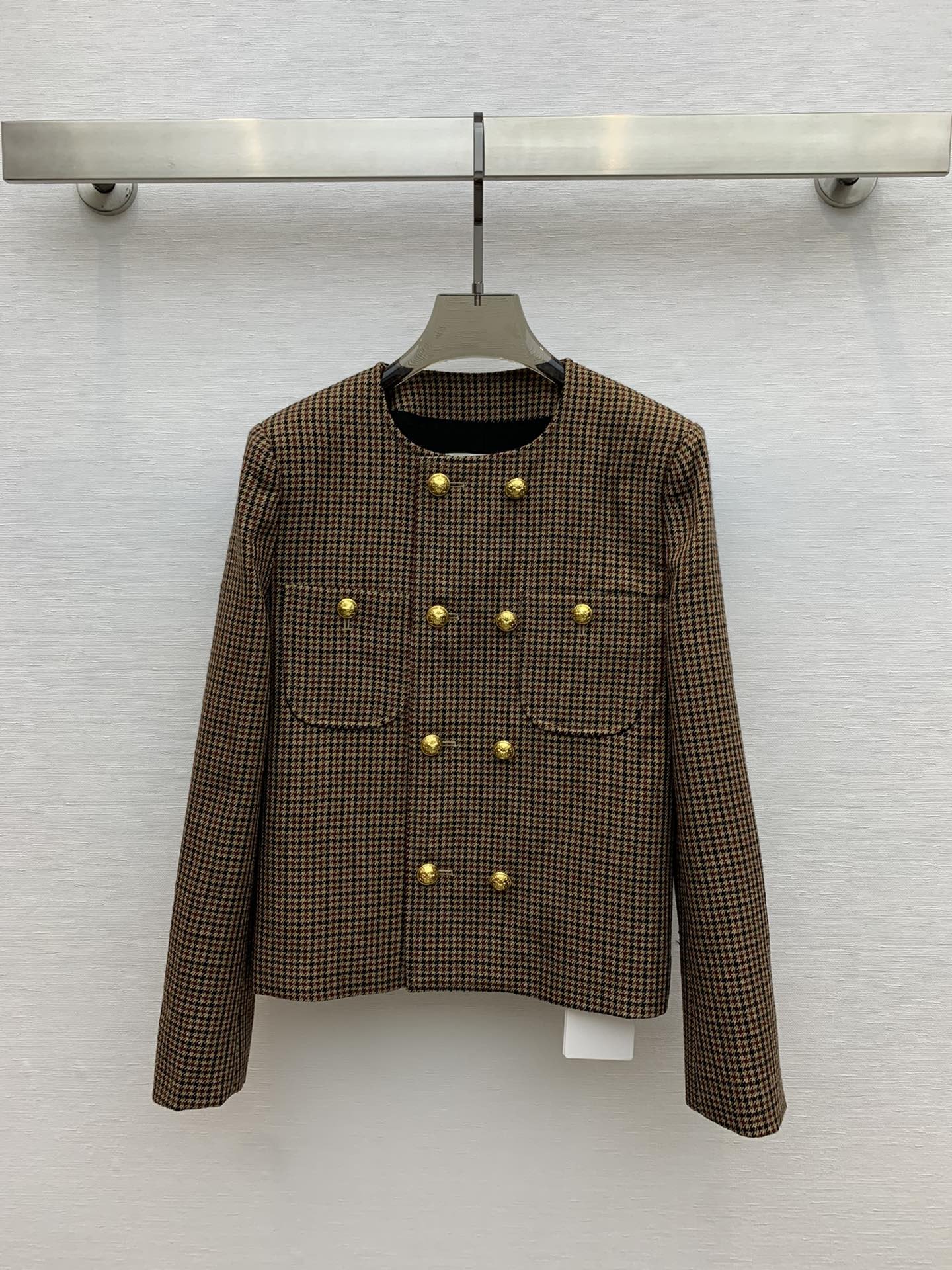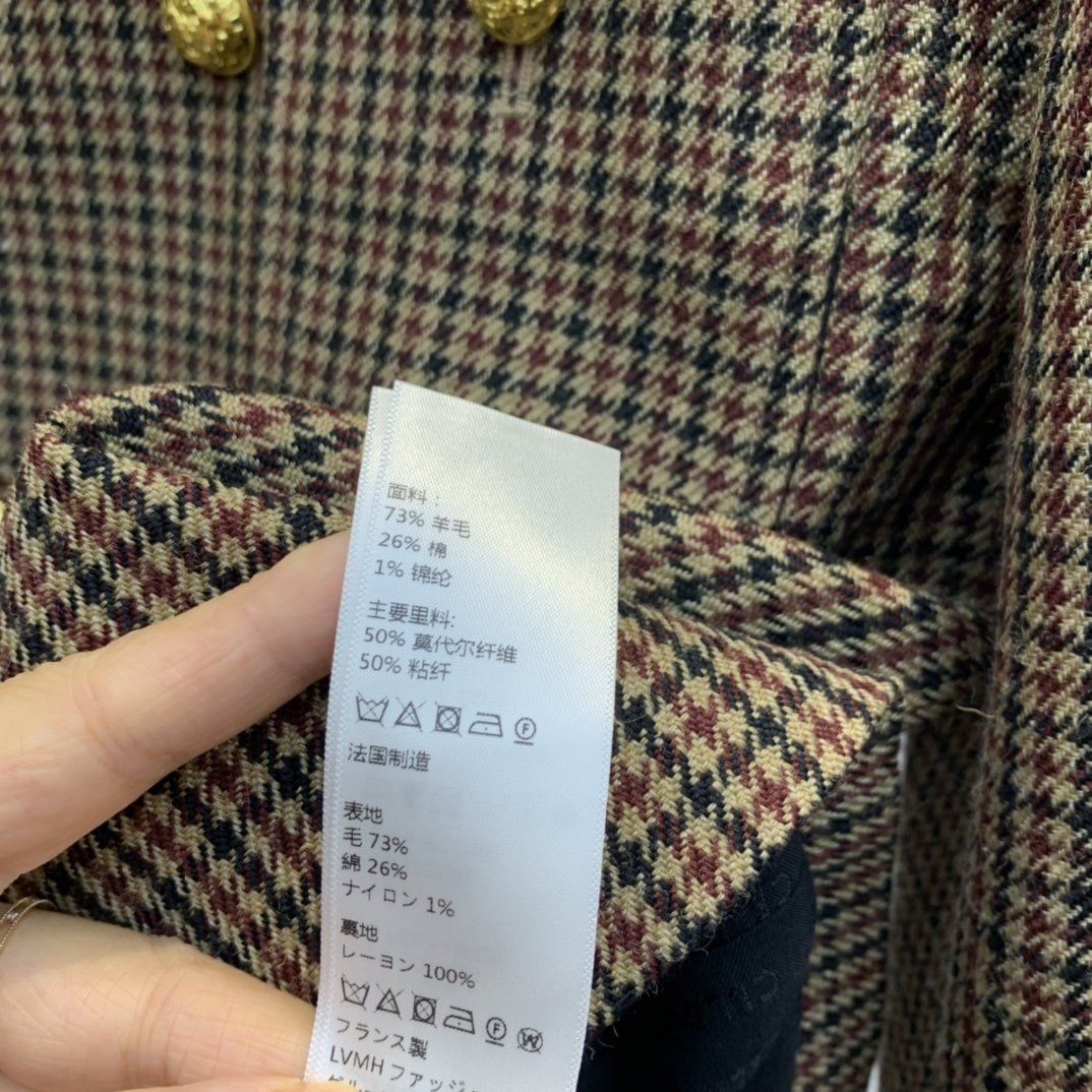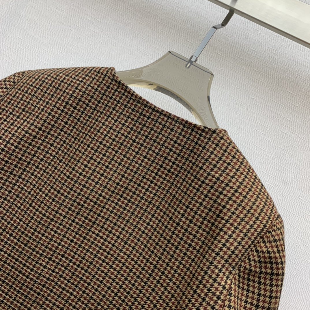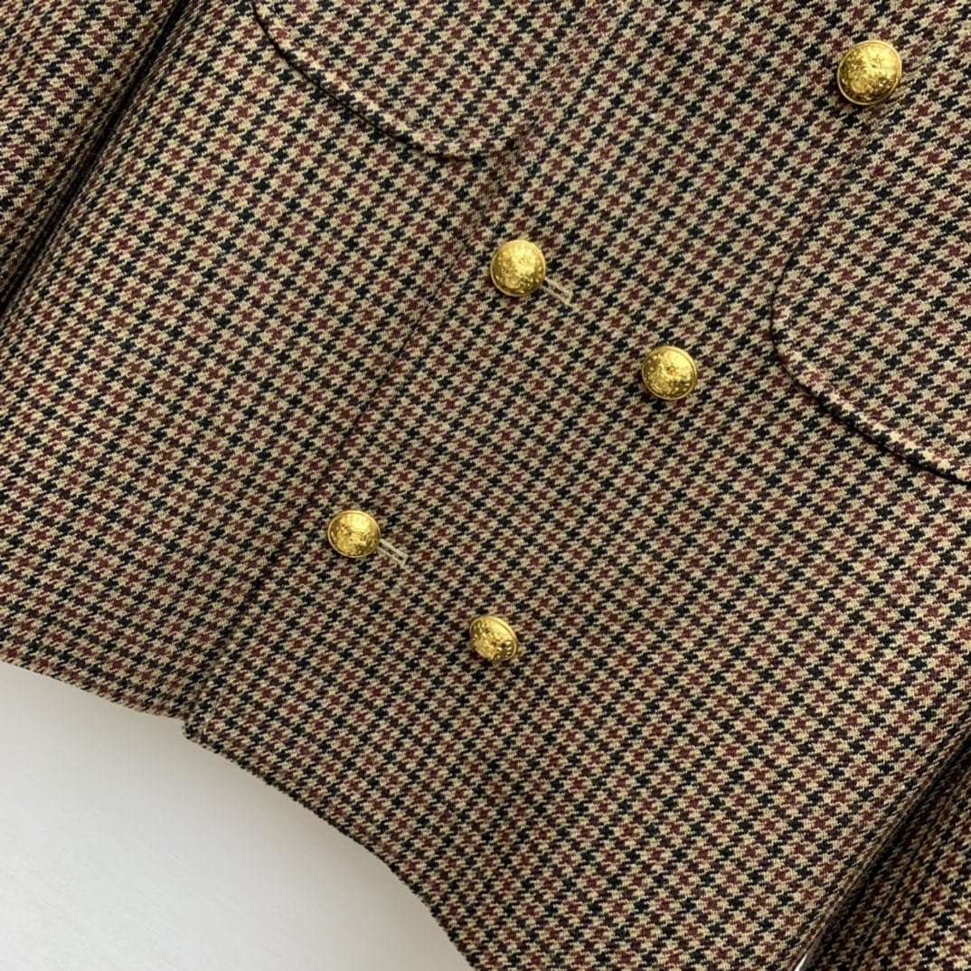 Celine 女士千鸟格羊毛夹克 棕色